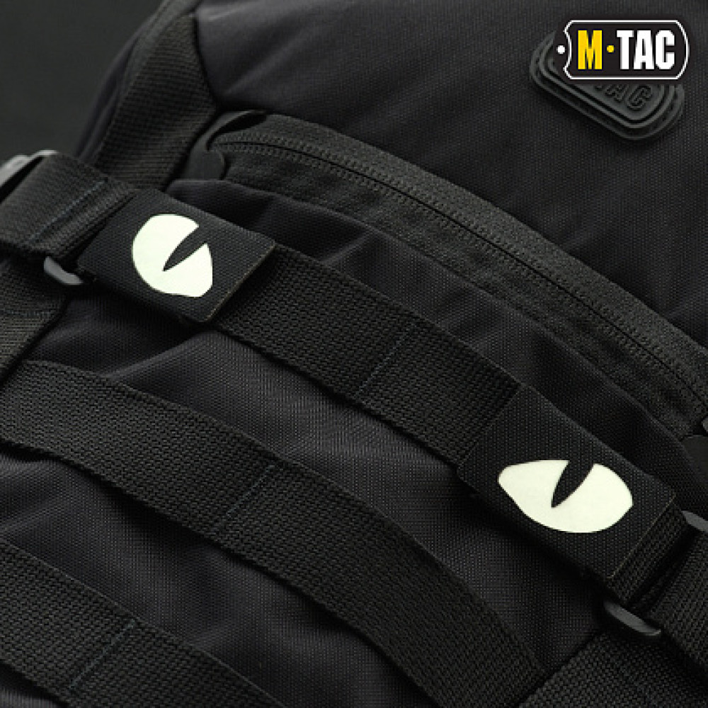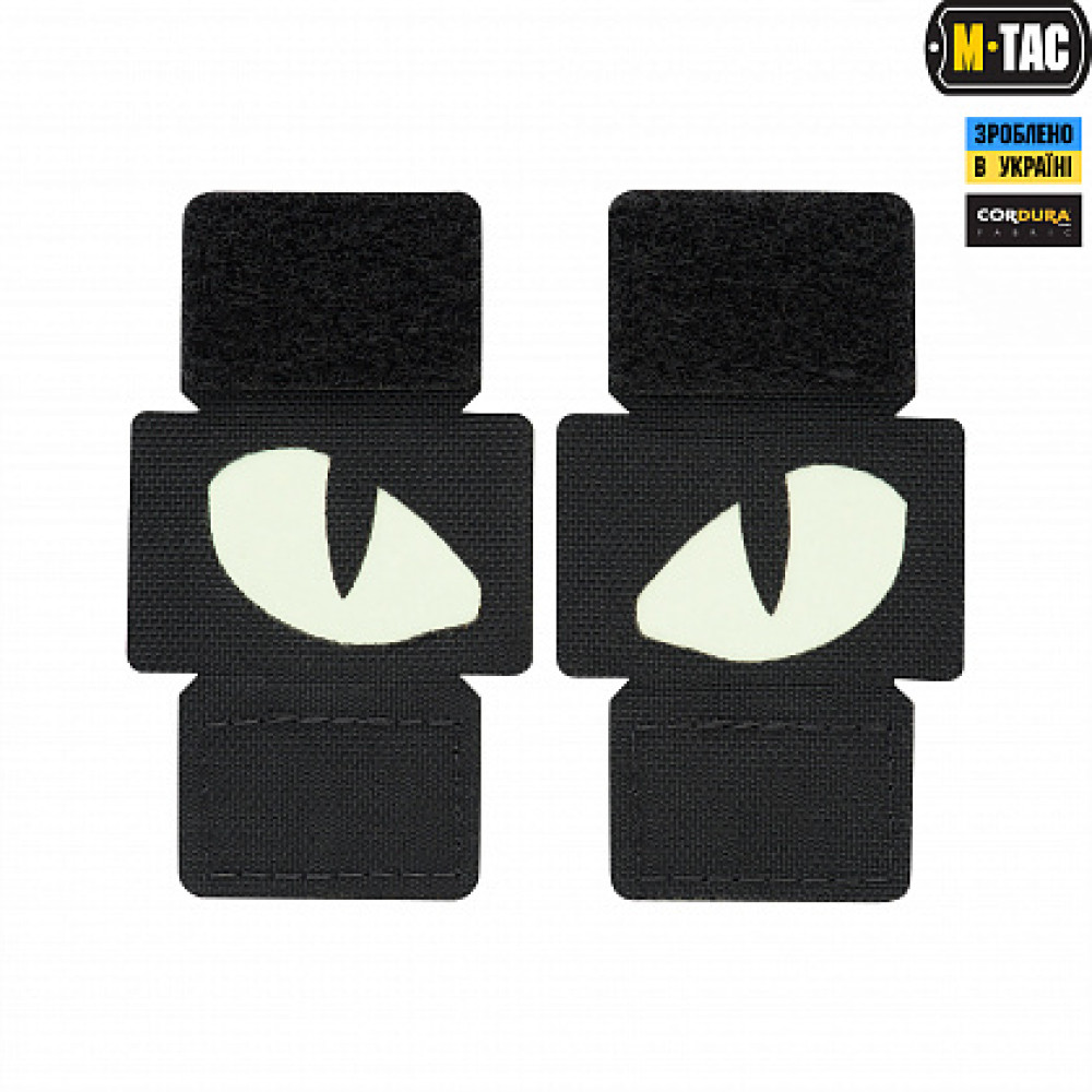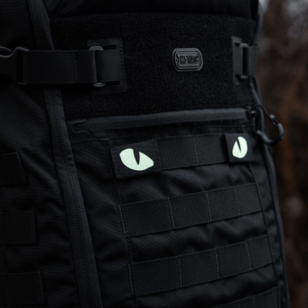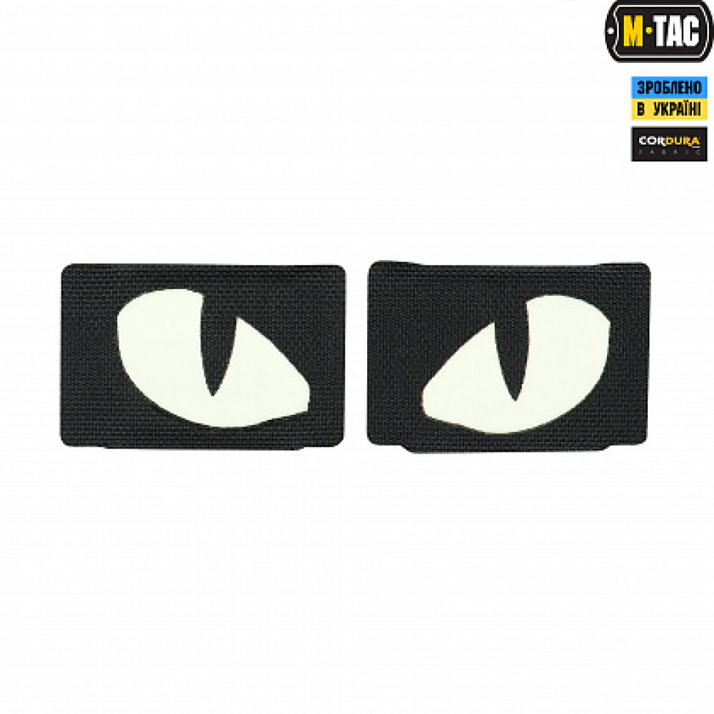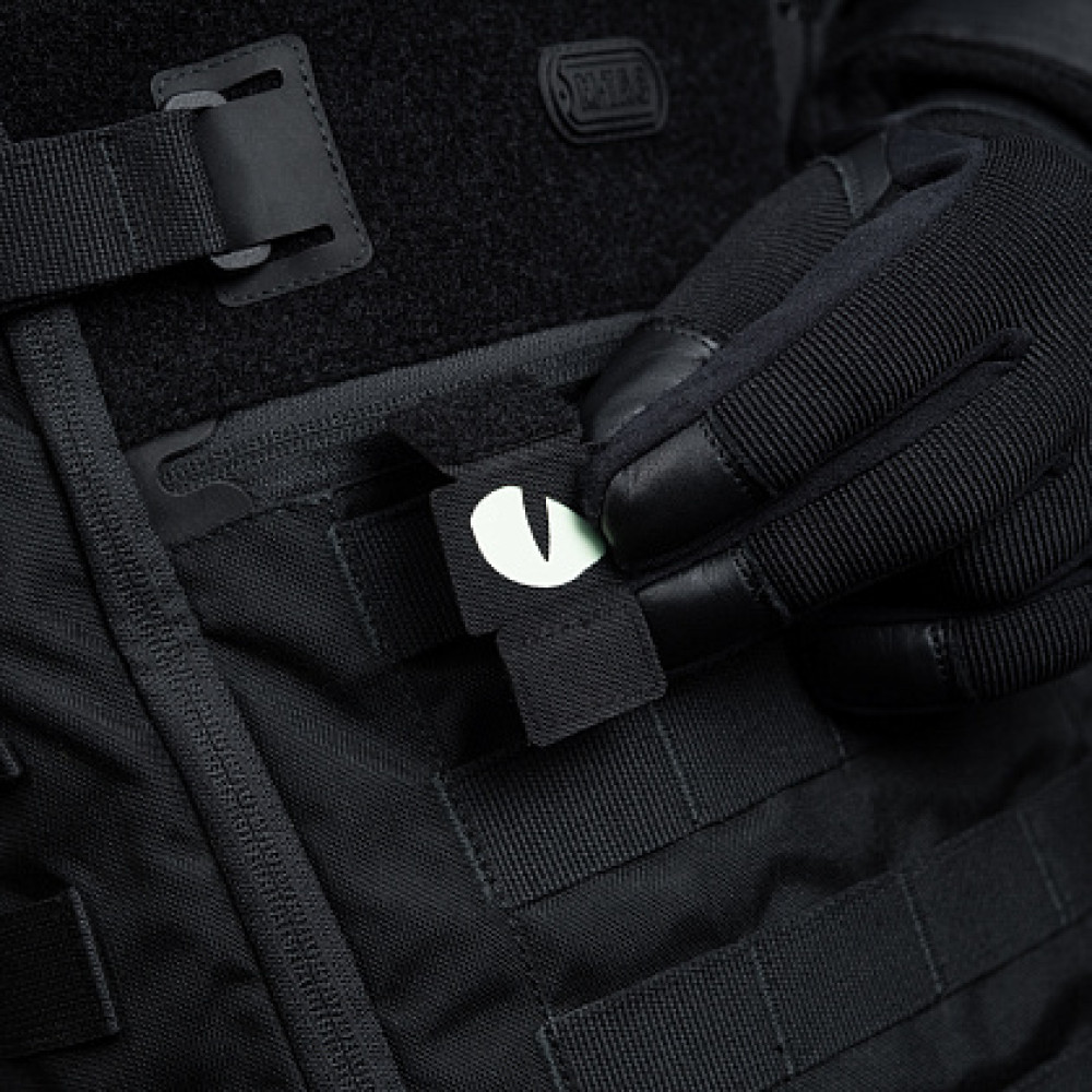 M-Tac нашивка Tiger eyes призначена для кріплення на MOLLE стропах замість звичайної липучки. Зображення виконане зі світлонакопичувального матеріалу, що світиться в темряві.