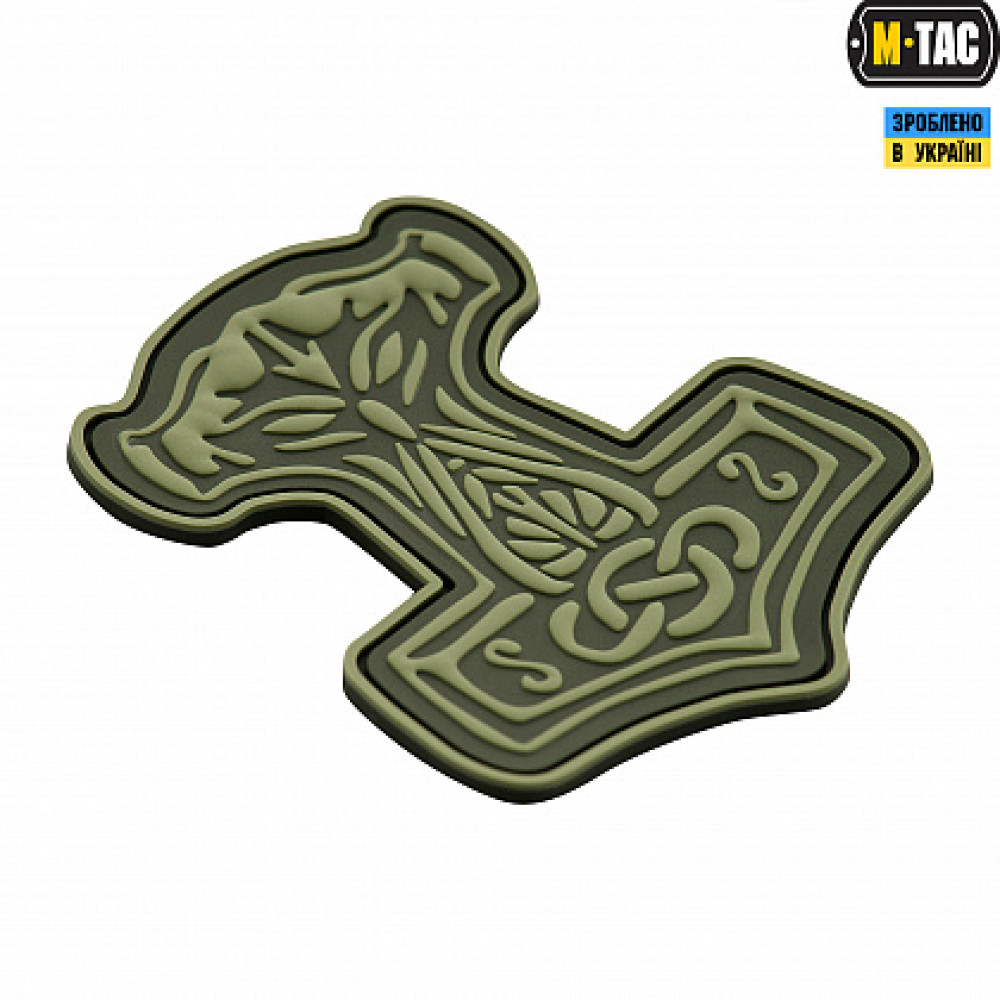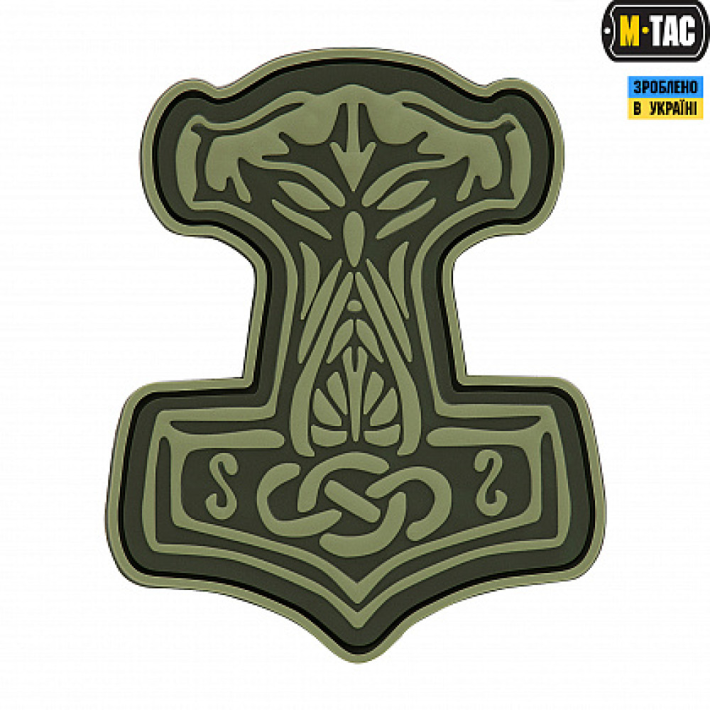 M-Tac нашивка із зображенням молота Тора( Мьольнір ). Давньоскандинавська назва (Mjöllnir), що в перекладі означає "Сокрушитель". Магічна метальна зброя Скандинавського бога Тора. Згідно з наданням молот Тора був легкий немов перо, але при цьому завжди потрапляв у ціль і смертельно вражав ворога. Удар молота Тора викликає гуркіт грому. Мьолльнір, за переказами, вважався Символом Бога Тора, а його стилізовані копії носили на шиї у вигляді підвісок, як амулети. Ці прикраси досі популярні та широко використовуються як обережні символи.