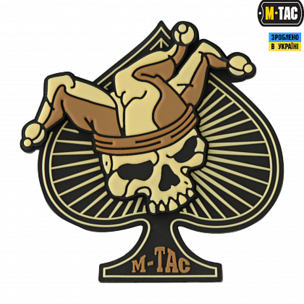M-Tac нашивка Ace of Spades 3D -так званий "Morale patches" - кріпиться на нарукавний майданчик з велкри-липучки, (на самому патчі зі зворотного боку пришита липучка у відповідь), або на спорядження - рюкзаки, каски та ін. Статутними не є, але може носитись як у зоні БД, так і за її межами.