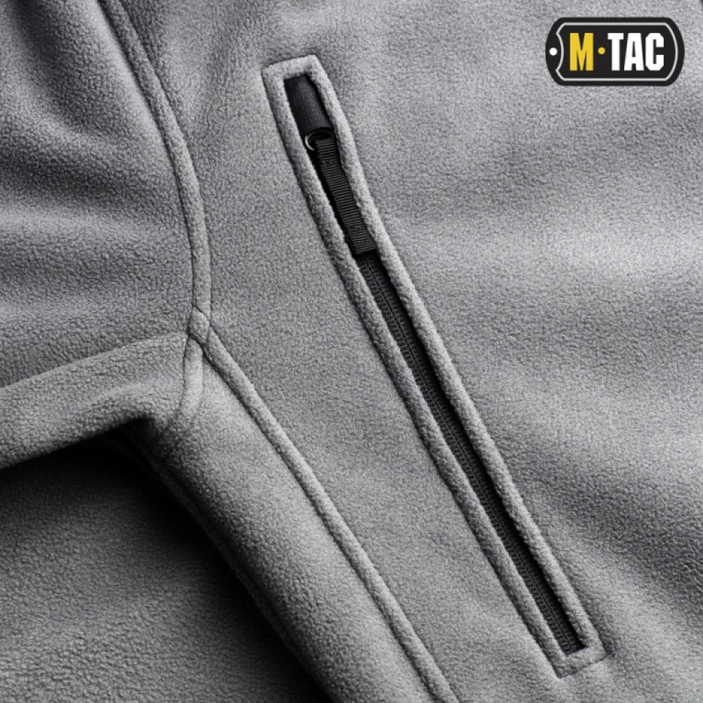 M-Tac куртка флісова Division однаково відмінно підійде на прохолодну та холодну погоду. У першому випадку Ви зможете використовувати її як зовнішній шар, у другому як утеплювач під курточку або парку. Виготовлена із 100% поліестеру. Структура мембранної решітки WindBlock розрахована на умови низьких і максимально низьких температур таким чином, щоб 80% тепла тіла відбивалося від поверхні всередину і лише 20% (зайве тепло при активних діях за низьких температур) виходило назовні через мембранні грати. Більшість сучасних мембранних тканин з поверхневим поліуретановим напиленням не призначені для максимально низьких температур у зв'язку з тим, що поліуретан твердне при низьких температурах, що згодом призводить до твердіння тканини в цілому. Наслідком цього є характерне "шелестіння" при пересуваннях. У мембранній термотканині WindBlock для захисту мембрани використовується не поліуретанове напилення, а щільний поліестро-структурований ворс (зсередини і зовні мембрани), що захищає мембрану від впливу низьких температур, стирання (як зсередини, так і зовні) і створює додатковий утеплюючий повітряний прошарок зсередини з WindBlock. Така тришарова будова мембранної тканини повністю прибирає ефект шарудіння. Має посилення із нейлонової тканини на ліктях. Застібається на блискавку та обладнана безліччю кишень. На рукавах виробник додав велкро-панелі для кріплення ID нашивок. На спині розташована задня вантажна кишеня, в якій ви зможете транспортувати рукавички та інші утилітарні дрібниці.