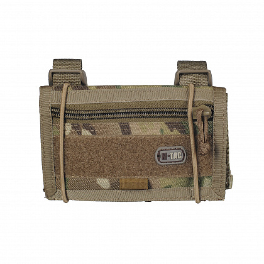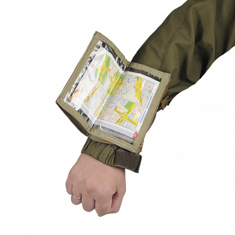 M-Tac планшет наручний є тактичним бандажем на передпліччі. У цій версії основне відділення фіксується на утяжках, що дозволить вам скористатися планшетом, не видаючи власну позицію. Кріпиться навколо передпліччя для швидкого доступу до відсіків, які можна використовувати для фотографій, карт, пам'яток тощо. Мале відділення на блискавці на зовнішній стороні може використовуватися для ручки або олівців.