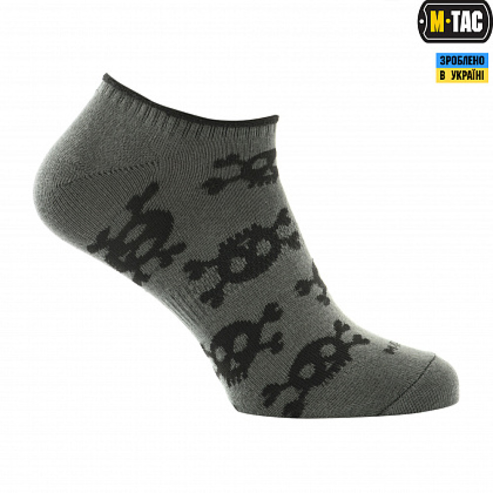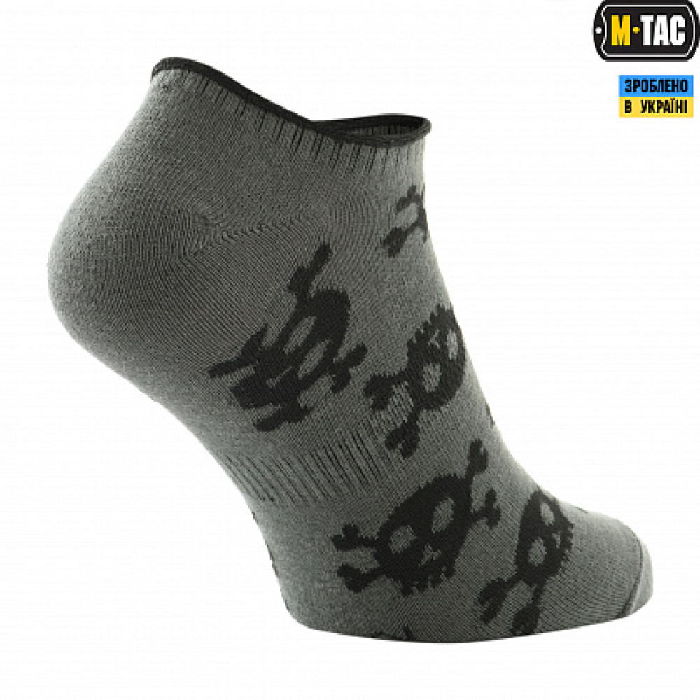 Укорочені шкарпетки M-Tac Pirate Skull розроблені спеціально для бігу, також відмінно підходять для всіх інших видів активного спорту та відпочинку у спеку року. Забезпечити максимальний комфорт спортсмену, тонкі еластичні манжети щільно облягають кісточку (не передавлюючи), а розміщені ергономічно точки тиску забезпечують оптимальну посадку і комфорт, шкарпетки не сповзають з ноги. Тканина, з якої вони виготовлені, забезпечує відмінну вентиляцію.