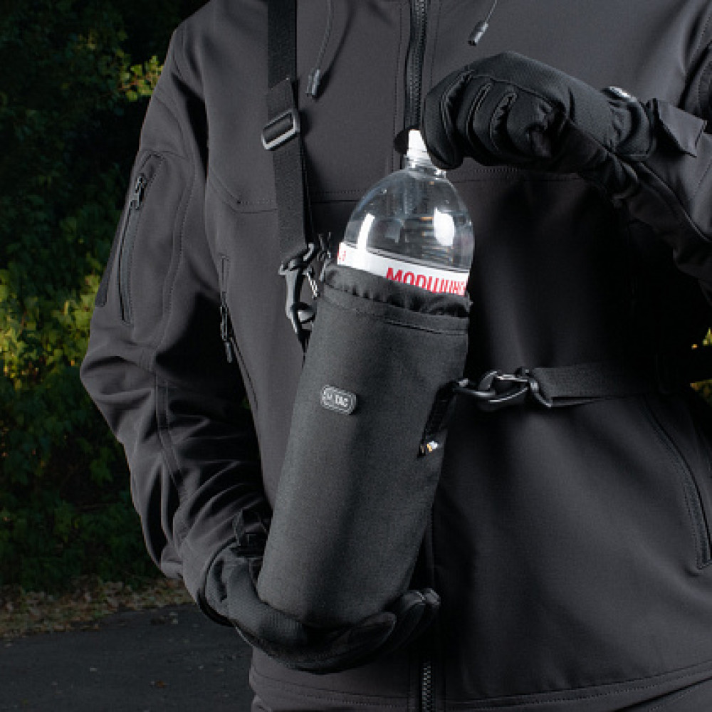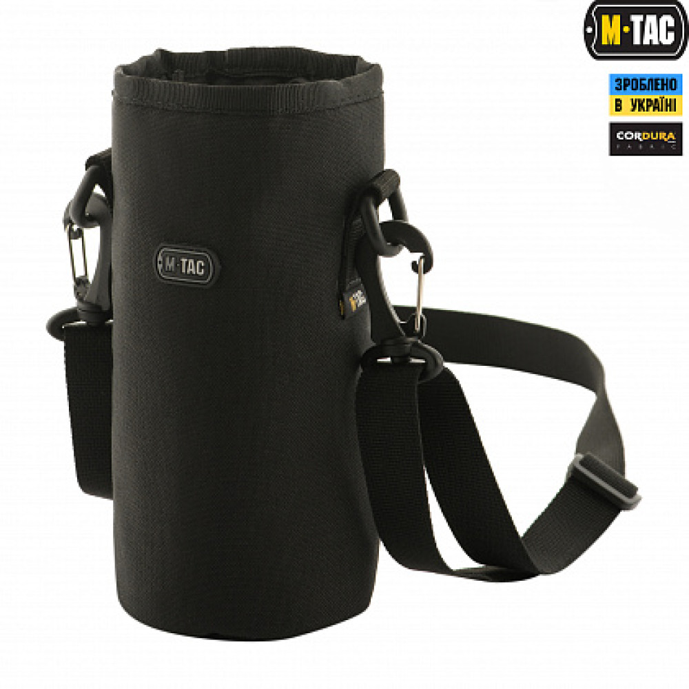 M-Tac підсумок для пляшки з ременем . Конструктори додали у зручне і надійне кріплення для ременя (D-кільця для плечового ременя), а також стропи системи MOLLE. Виробник додав матеріал, який робить теплоізоляцію і тепловідбиття, що надає такому підсумку ефекту міні термоса.