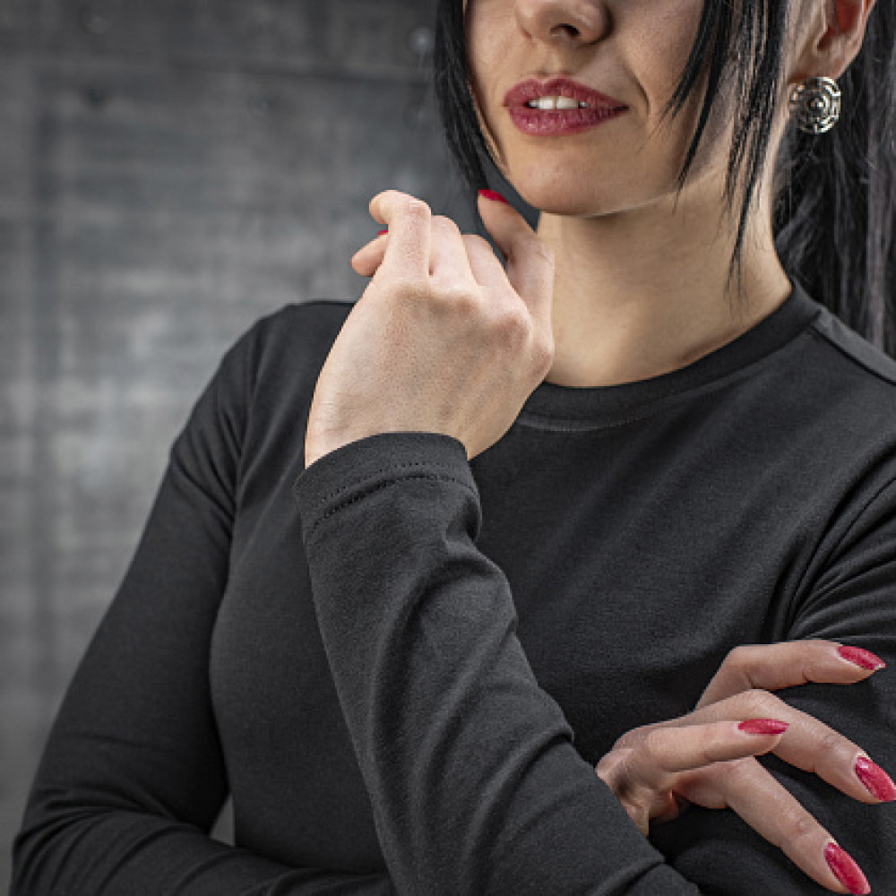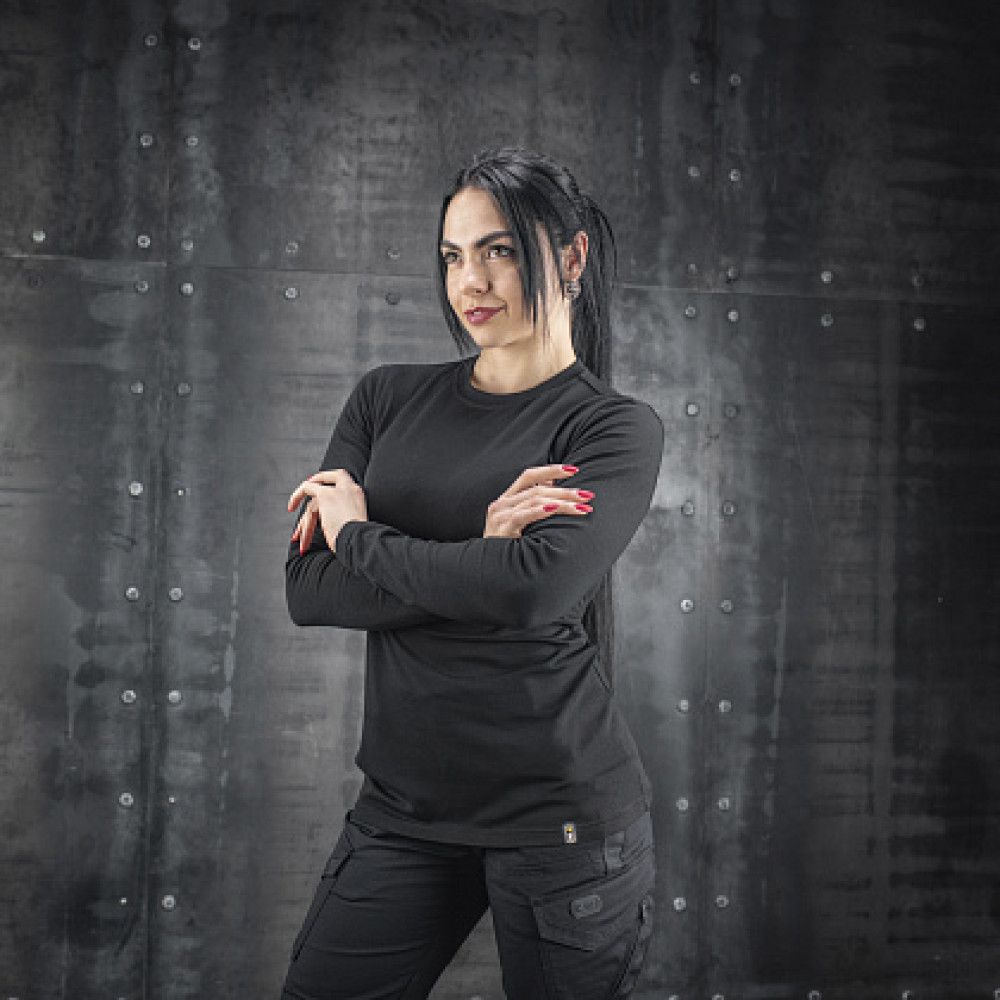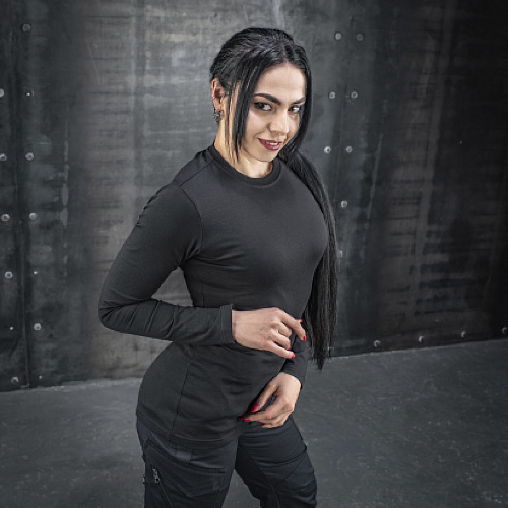 Дана модель пошита з якісної повітропроникної тканини (93% бавовна, 7% еластан), що забезпечує оптимальну терморегуляцію тіла. Анатомічний крій та тонкий еластичний трикотаж вдало підкреслюють жіночу фігуру.