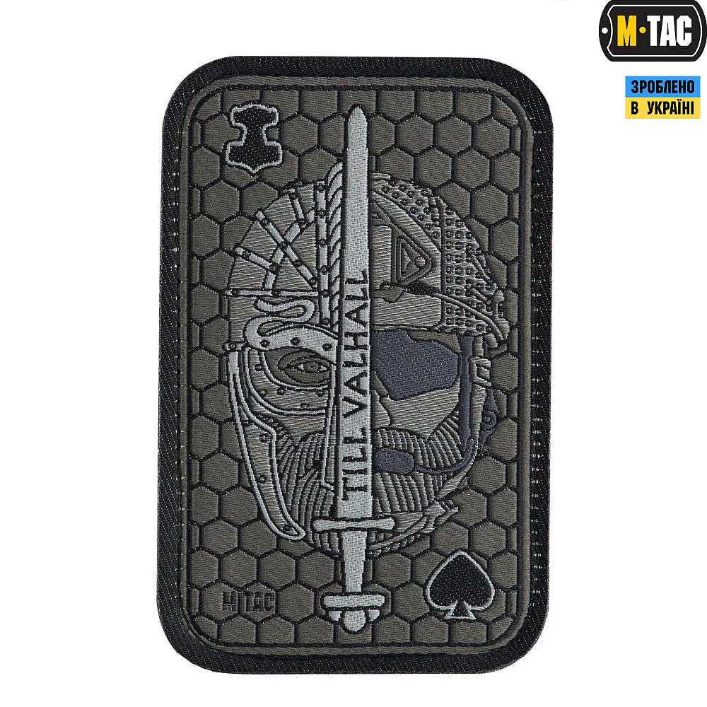 Нашивка від бренду M-Tac "Ми полюєм - У Вальгалу". На створення цієї нашивки дизайнерів бренду надихнуло відоме відео норвезьких бійців в Афганістані. В Афганістані, підірвавшись на фугасі, загинув Claes Joachim "Jokke" Olson боєць батальйону "Telemark". Його загибель спровокувала появу у солдатів батальйону нашивки з написом "Jokke - Ми ніколи не забудемо". Командир батальйону, стоячи над труною накритим прапором, сказав: Ми будемо мститись за тебе, Jokke! Офіцер прокричав потрійне TILL VALHALL, і його воїни підтримали командира кличем у відповідь.