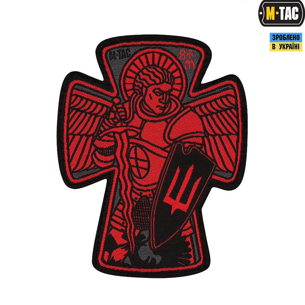 На нашивці зображено святого Архістратига Михаїла з вогненним мечем і тризубом на щиті. Нарукавна нашивка Архангел Михайло - так званий "Morale patches" - кріпиться на нарукавний майданчик з велкри-липучки, (на самому патчі зі зворотного боку пришита липучка у відповідь), або на спорядження - рюкзаки, каски та ін. Статутними не є, але може носитись як у зоні БД, так і за її межами.