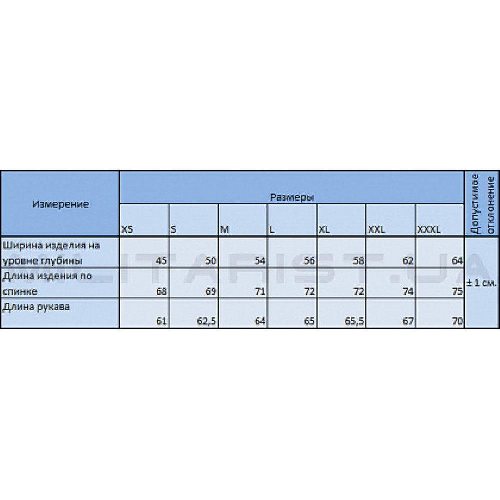 Довжина рукава D 63,0 65,5 67,0 67,0 70,0 ± 1 см