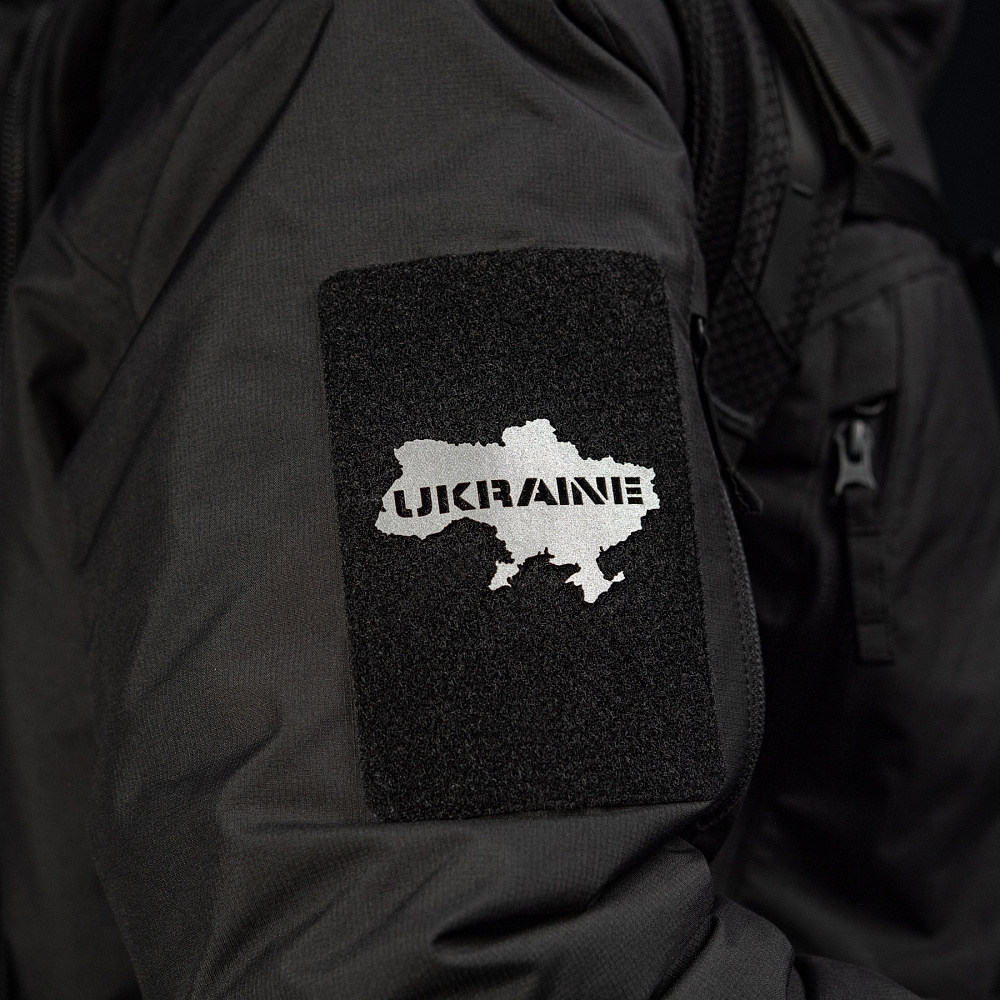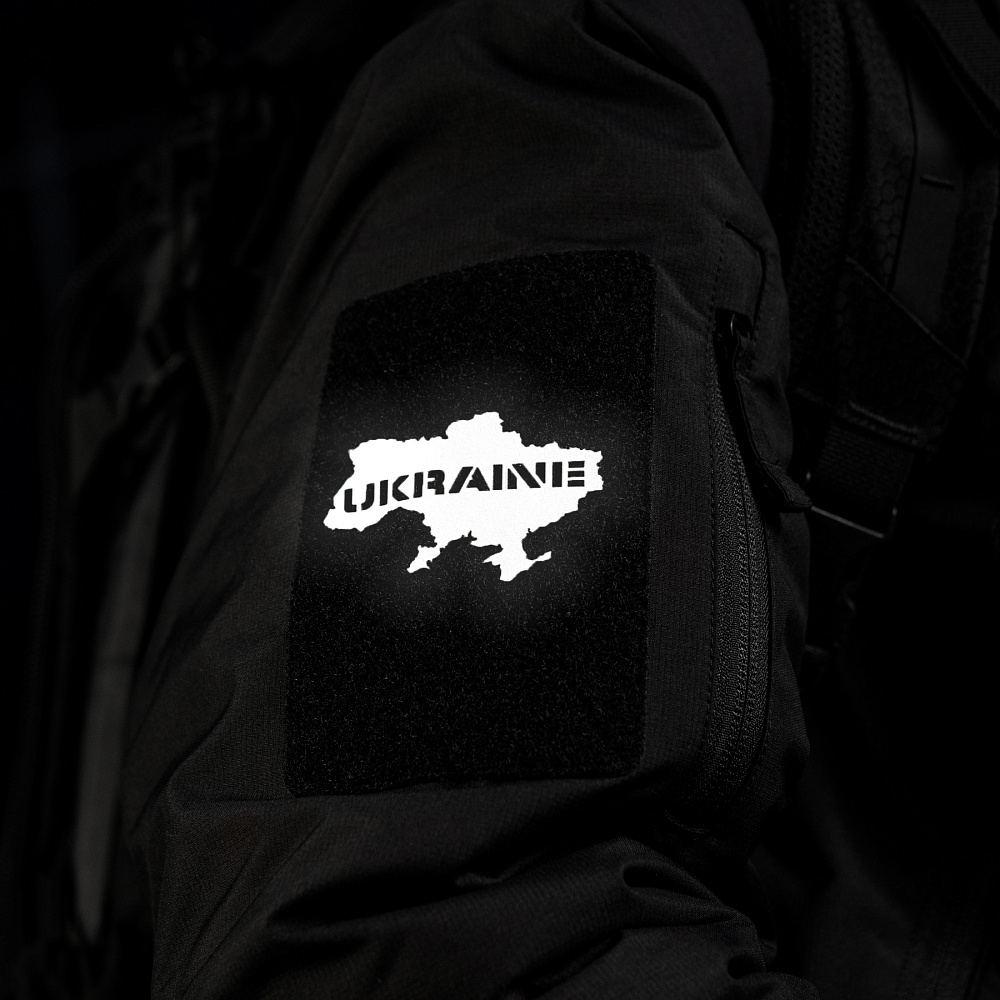 Патч виготовлений з якісного та міцного матеріалу Oxford 190г/м з використанням світловідбиваючої плівки світло-сірого кольору, яка є найбільш помітною в темряві. Наскрізний напис Ukraine виконаний за технологією Laser Cut. Нашивка світиться при попаданні на неї світла, тому вас буде добре видно здалеку в темний час доби.
