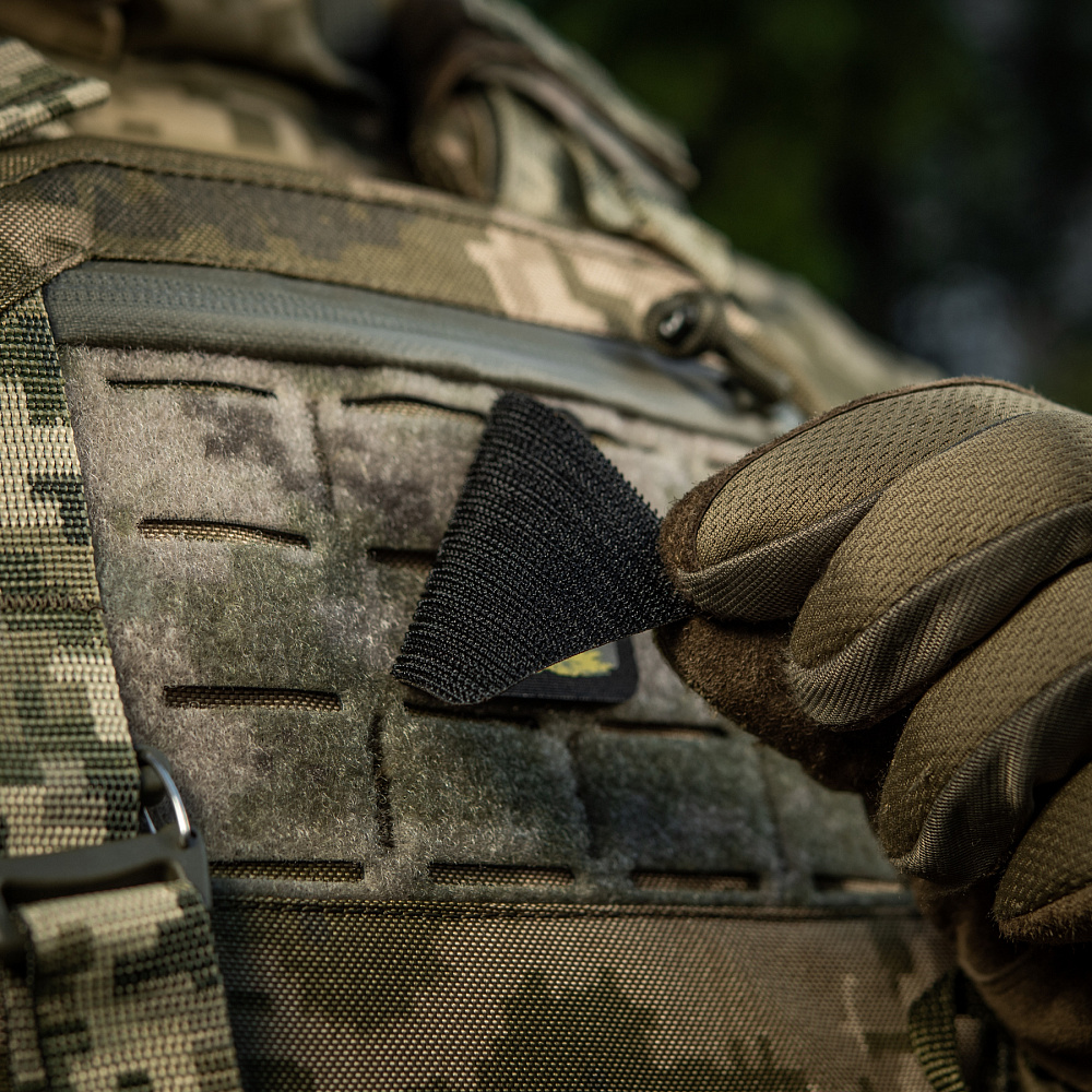 Виготовлений з якісного та міцного матеріалу Oxford 190г/м із нанесенням повноколірного друку. Кріпиться на одяг, кепки, сумки та рюкзаки за допомогою велкро липучки.
