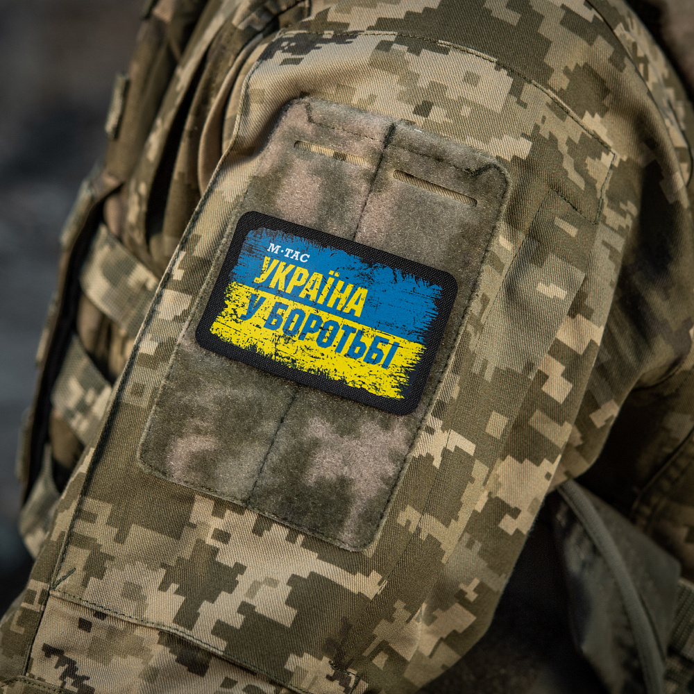 Нашивка Україна в боротьбі від бренду М-Тас – це моральний патч, який покликаний підвищувати бойовий дух та заявляти про патріотичні цінності власника. На патчі зображено прапор України з написом " Україна в боротьбі ". Це уособлює постійну боротьбу нашої країни за свої права, свободу та незалежність.