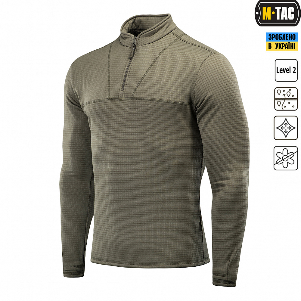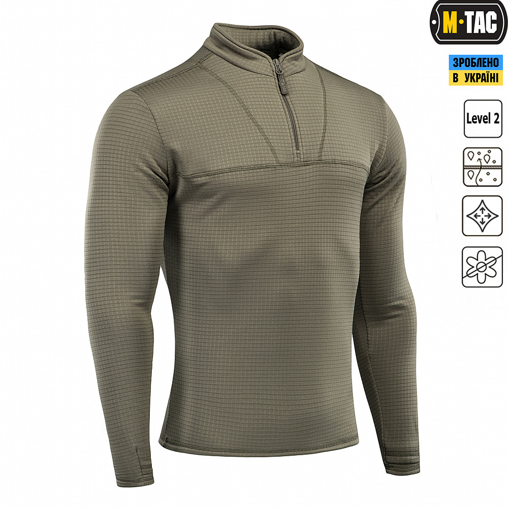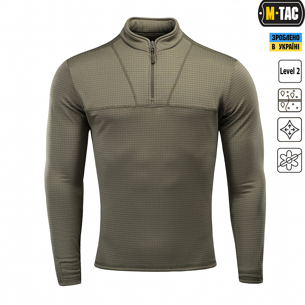 M-Tac Delta Level 2 - термосорочка-пуловер для холодної погоди від бренду M-Tac. Зроблена за образом і подобою другого шару ECWCS - Extended Cold Weather Clothing System Generation (ECWCS). Модель володіє зігріваючими і вологовідвідними властивостями. Розрахована на використання в суворих кліматичних умовах.