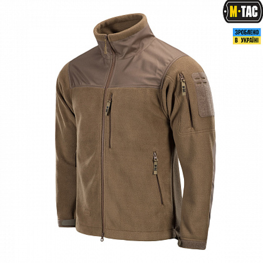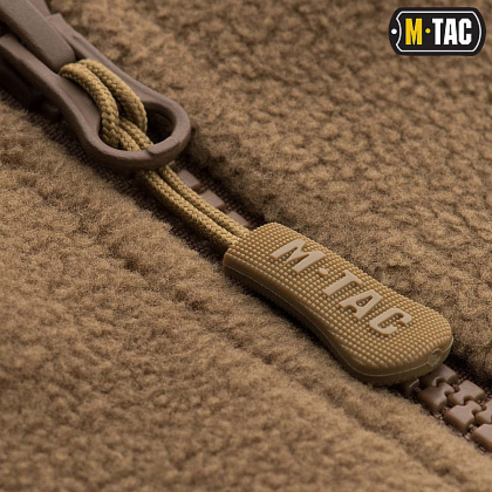 Флісова куртка від бренду M-Tac другої генерації. Розрахована використання замість третього шару ECWCS. Матеріали виготовлення – фліс, 100% поліестер (оксфордський нейлон), ламінована поліефірна сітка. На плечах та рукавах нейлонові вставки. Куртка застібається на двосторонню пластикову блискавку. Обладнана п'ятьма кишенями. На рукавах панелі велкро для кріплення ID нашивок. А у манжетах нейлонові вітрозахисні вставки. Підкладка ламінована поліефірна сітка м'яка і приємна на дотик.