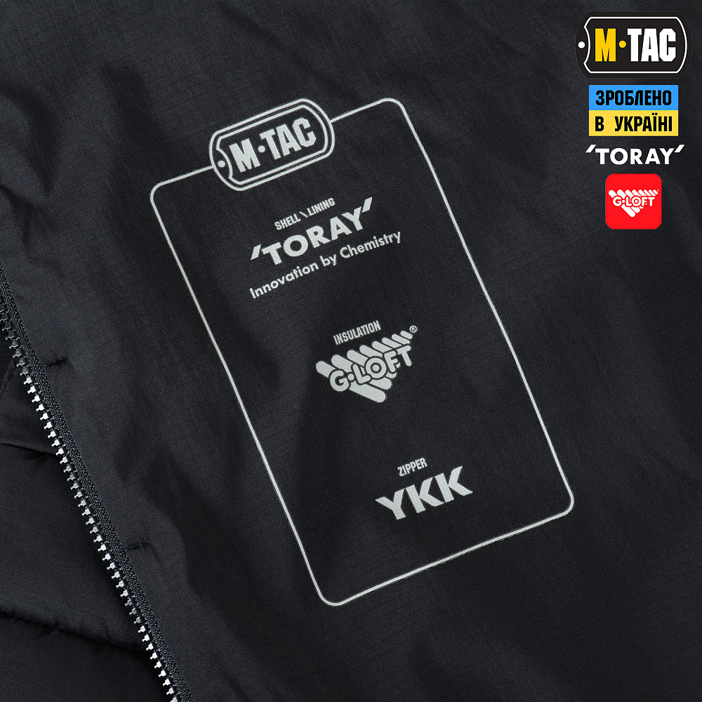 Пошита с дышащего нейлона Toray mechanical stretch с вставками из эластичного материала бифлекс. Это обеспечивает максимальную защиту от холода и ветра. Куртка утеплена инновационным австрийским наполнителем G-Loft, что обладает высокими теплоизоляционными свойствами и легко испаряет влагу при намокании. Воротник-стойка и вставки с бифлекса утеплены подкладкой из микрофлиса от всемирно известного итальянского бренда Pontetorto.