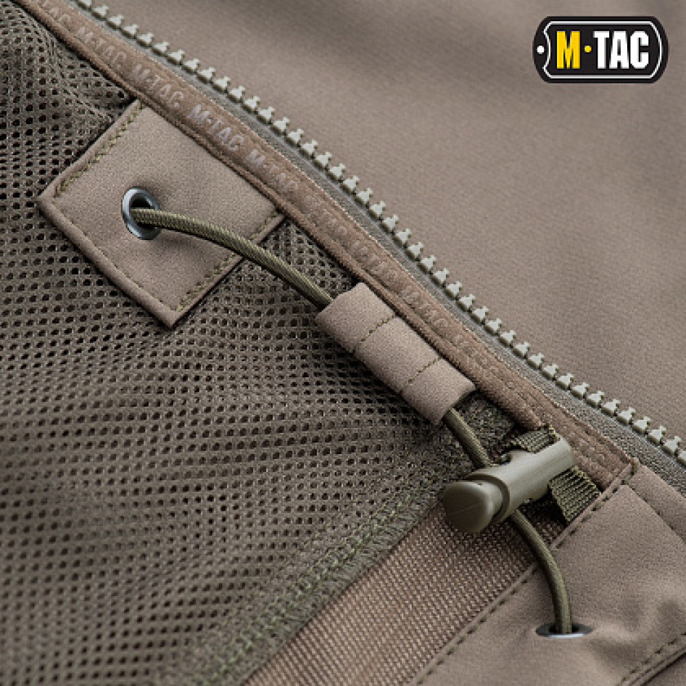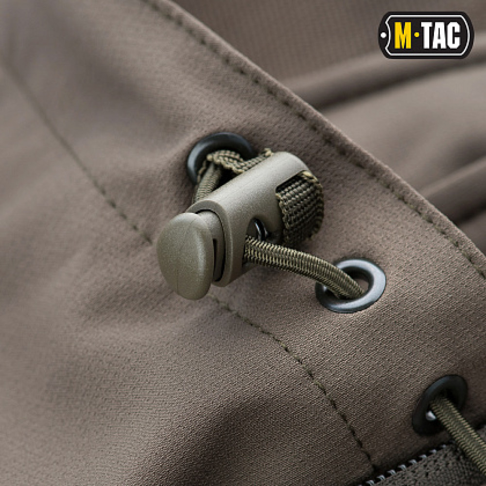 По нижньому краю вітровки пропущений еластичний шнур, затягнувши який можна поліпшити вітронепроникність куртки знизу.