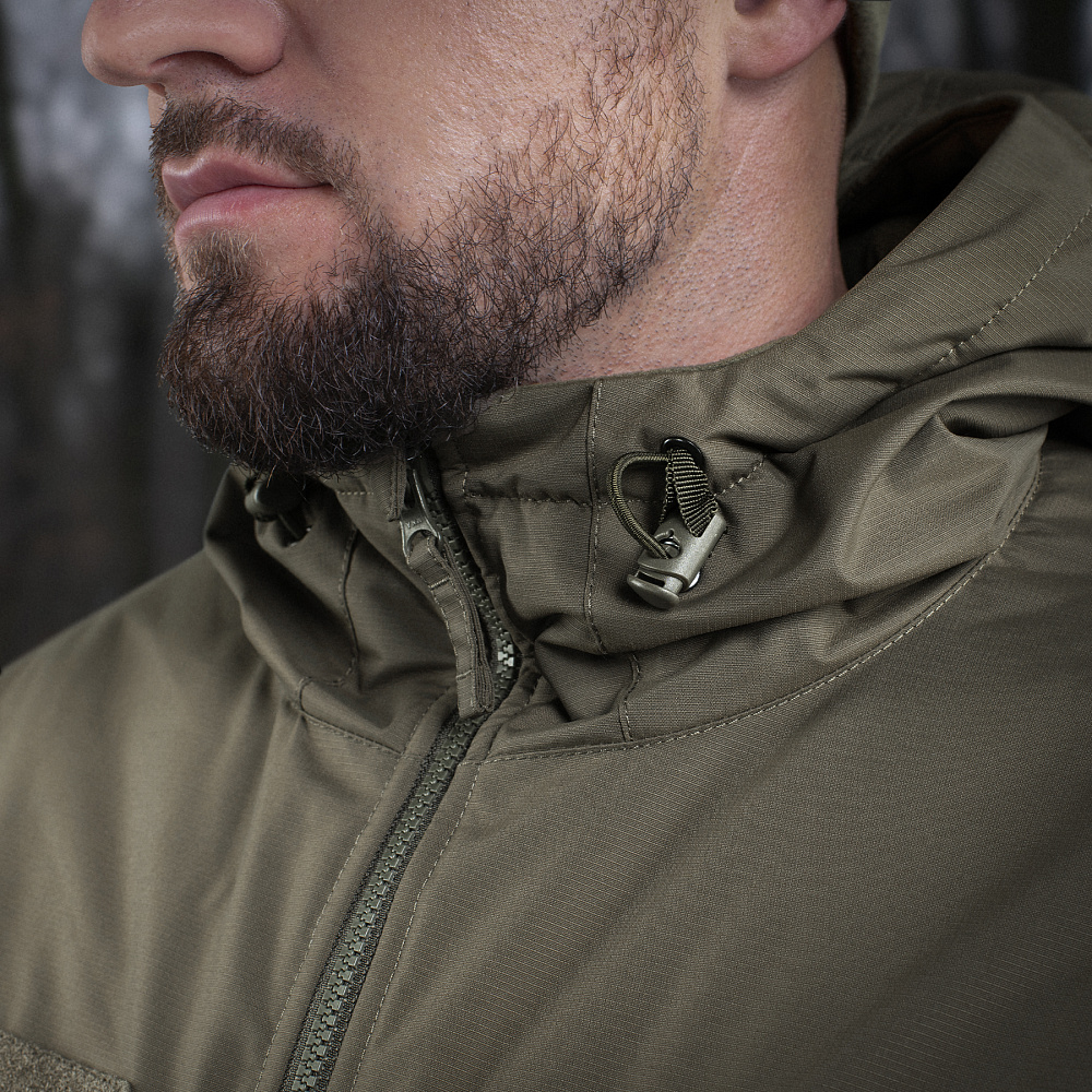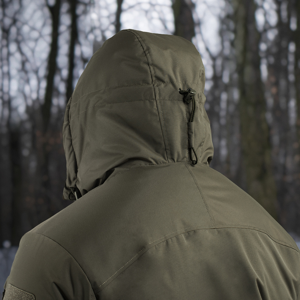 Куртка обладнана незнімним утепленим капюшоном, що регулюється за об'ємом і висотою. Манжети із вбудованою резинкою добре прилягають і не пропускають холодне повітря. Низ куртки регулюється за об'ємом за допомогою вшитого еластичного шнура з фіксатором. Спеціальні велкро панелі призначені для кріплення ідентифікаторів та патчів.