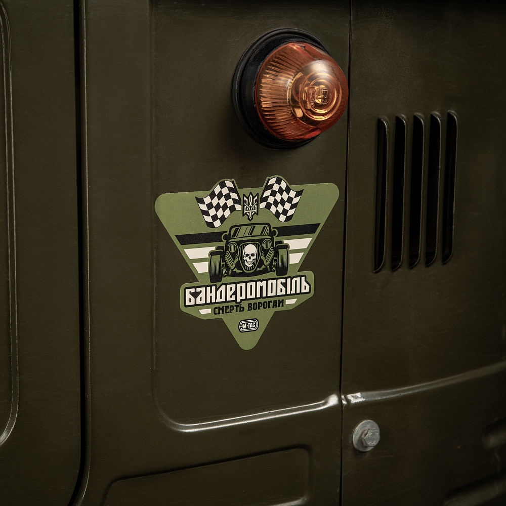 Якщо ви хочете виразити підтримку українським бійцям і відчути себе за кермом бандеромобіля, обирайте промовисту наклейку від М-Тас.