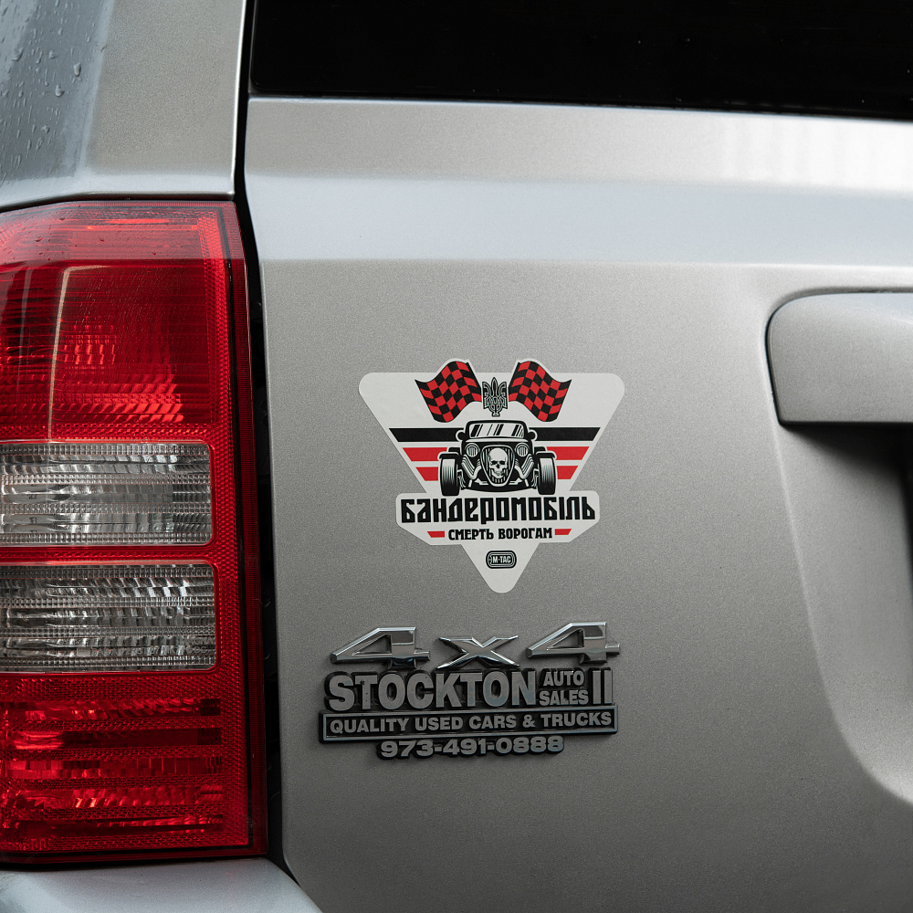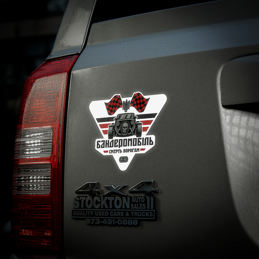 Якщо ви хочете виразити підтримку українським бійцям і відчути себе за кермом бандеромобіля, обирайте промовисту наклейку від М-Тас.
