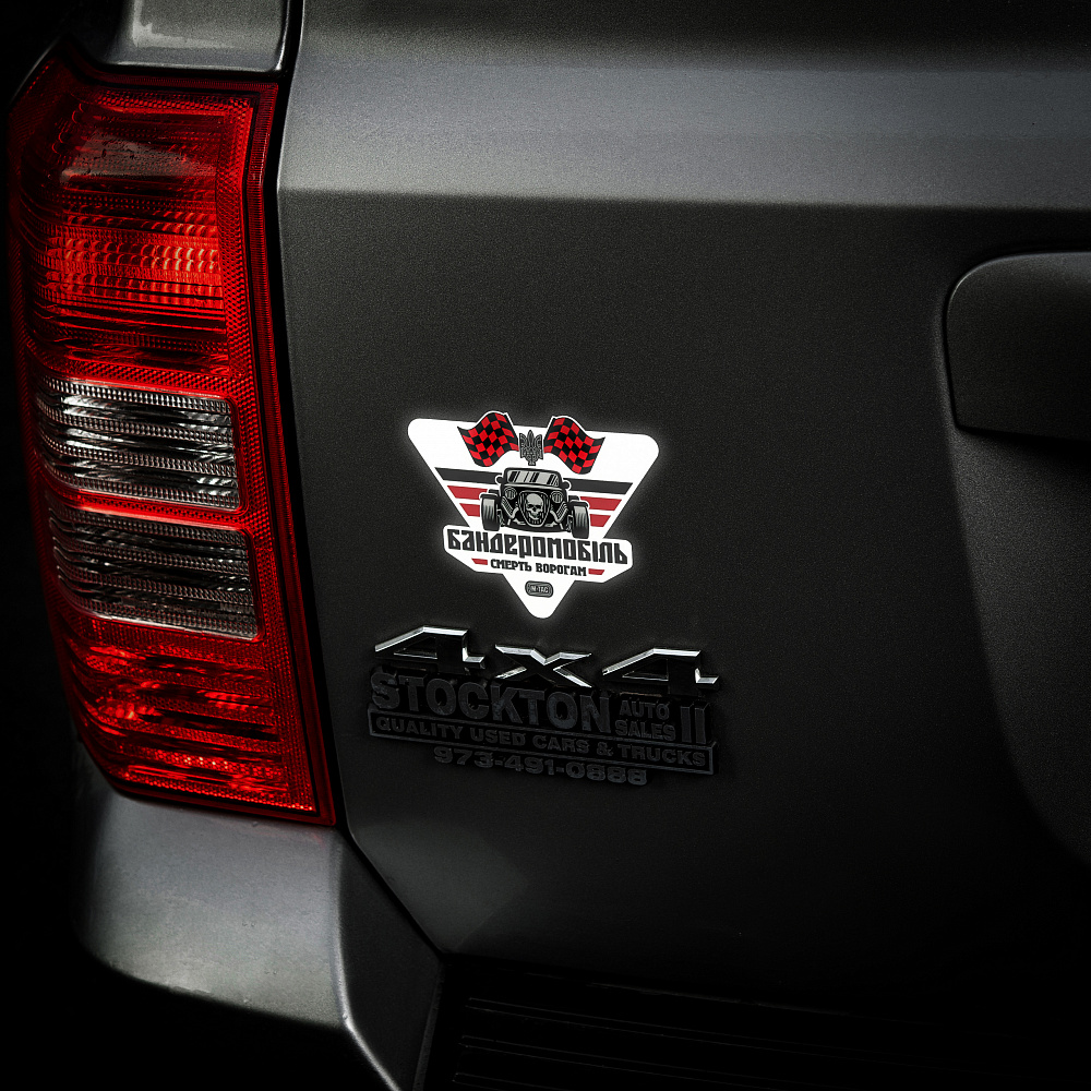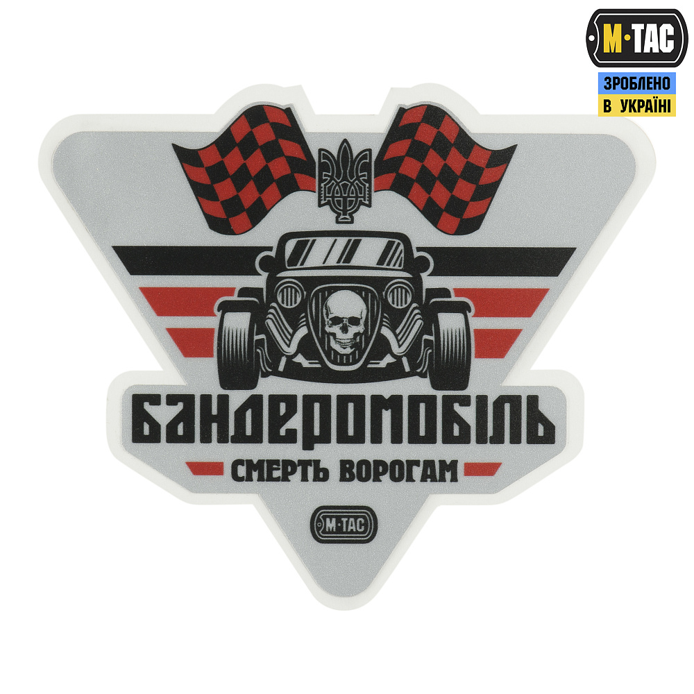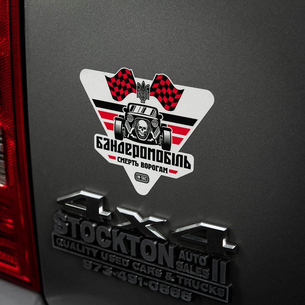 Якщо ви хочете виразити підтримку українським бійцям і відчути себе за кермом бандеромобіля, обирайте промовисту наклейку від М-Тас.