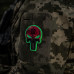 Нашивка виготовлена з високоякісного матеріалу ПВХ (полівінілхлориду) стійкого до впливу вологи та ультрафіолету. Світлонакопичувальні елементи нашивки світяться у темряві та привертають увагу. Кріпиться на одяг, сумки, рюкзаки або спорядження за допомогою велкро липучки.