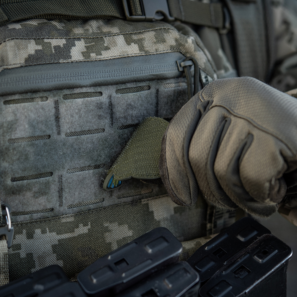 Нашивка виготовлена з високоякісного матеріалу ПВХ (полівінілхлориду) стійкого до впливу вологи та ультрафіолету. Кріпиться на одяг, сумки, рюкзаки або спорядження за допомогою велкро липучки.