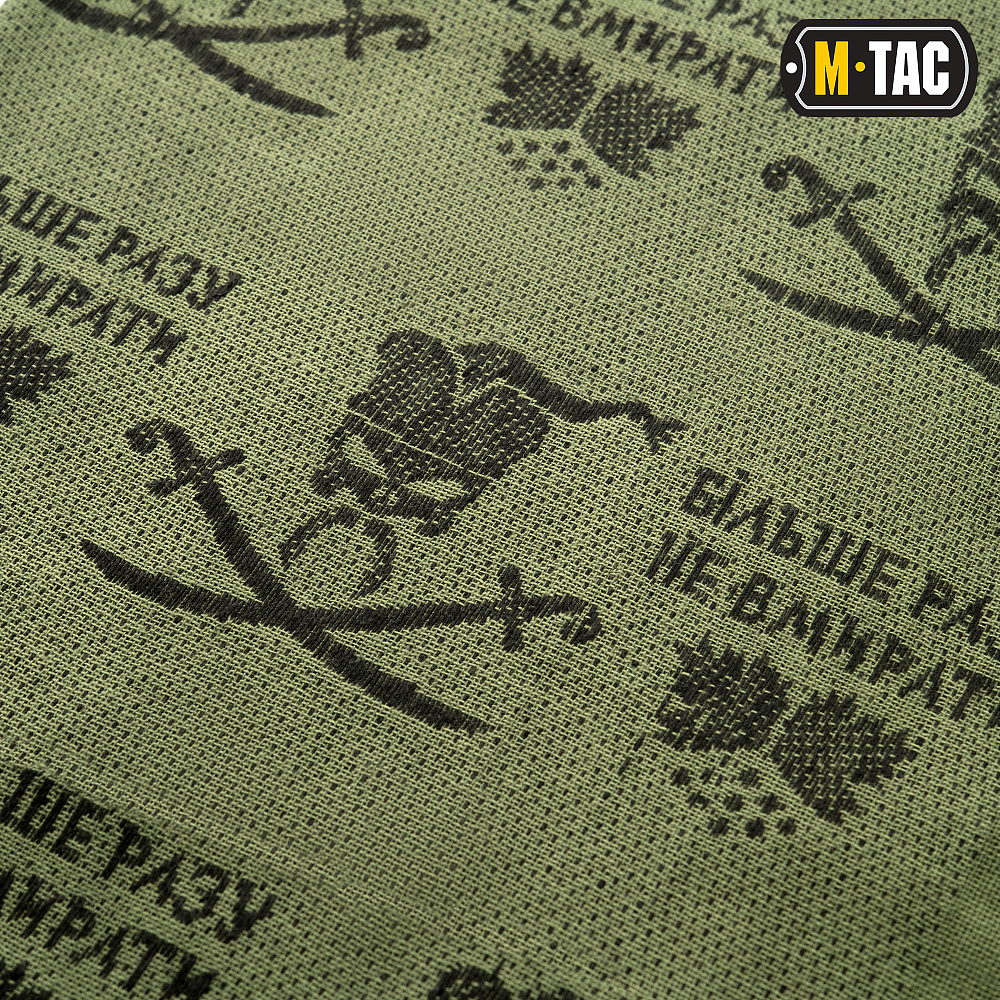 Тактичний пустельний M-Tac шарф шемаг із написом Більше разу не вмирати. Шарф типу "шемаг" (відоміший на території країн СНД як "арафатка") призначений для захисту області голови та шиї від впливу піску та сонця, а також для захисту від вітру за холодних погодних умов. Цей шарф використовується багатьма арміями світу.