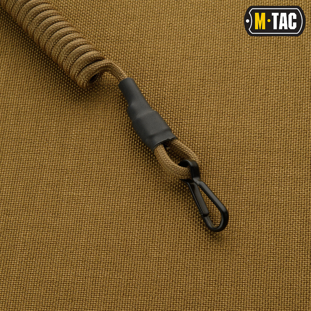 Шнур страхувальний пістолетний спіральний M-Tac призначений для зниження ризику втрачання зброї або заволодіння нею третіми особами. Кріплення предметів до даного шнура здійснюється за допомогою карабіна. Страхувальна пружина або страхувальний шнур, дуже необхідний як в туризмі так і працівникам правоохоронних органів або співробітникам охоронних структур. Даний шнур запобігає втраті особистих речей, чи то ліхтарик, чи ніж або рація а також запобігає вилученню короткоствольної вогнепальної зброї.
