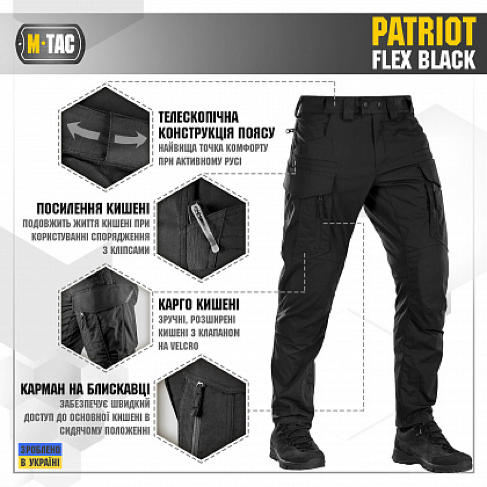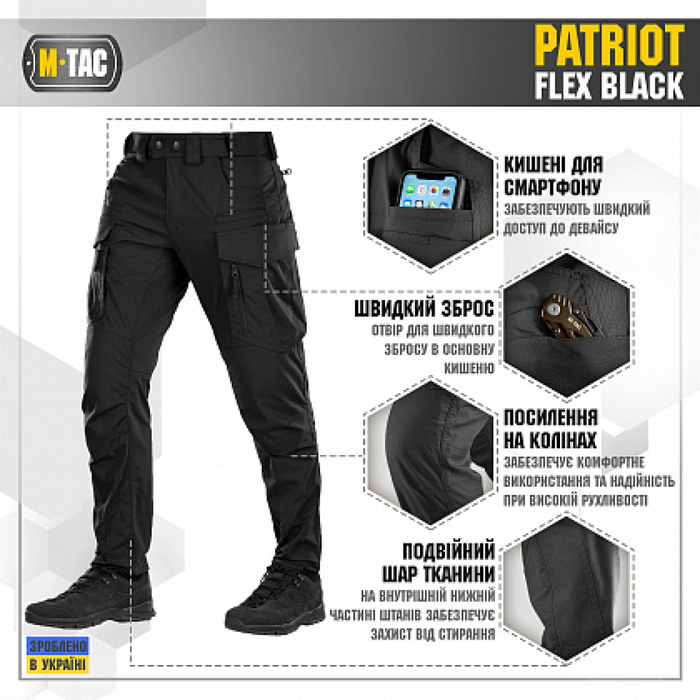 Тактичні штани Patriot ви можете використовувати як для тренувань, стрільбища, роботи, так і для ділової подорожі або прогулянки. Основним завданням дизайнерів штанів було зберегти комфорт рухів, і з цим завданням вони впоралися на всі сто відсотків – штани створюють відчуття легкості, не сковують рухи та виглядають стильно та солідно. Зручні широкі кишені із посиленими вставками. Штани розраховані на носіння з ременем завширшки до 5.5 сантиметрів. Спереду на кріпленнях для ременя нашиті пряжки для кріплення будь-чого (за допомогою карабінів). Неймовірна ціна на Якісна фурнітура від компанії YKK. Добре підібрані за розміром штани настільки зручно сидять і носяться, що створюється враження, що одягнений у спортивні штани.