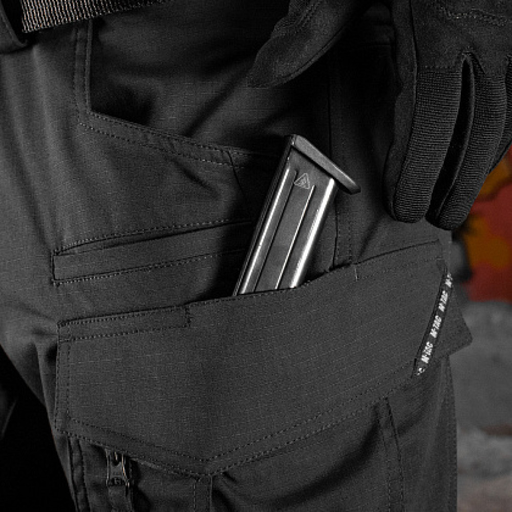 Кишені: | 1) дві задні кишені на блискавках 2) дві бічні кишені з підсилювальною накладкою для кліпси ножа 3) дві великі кишені для смартфона з діагоналлю до 6" 4) дві великі карго кишені зі складками для надання додаткового об'єму, з клапаном на кнопках |