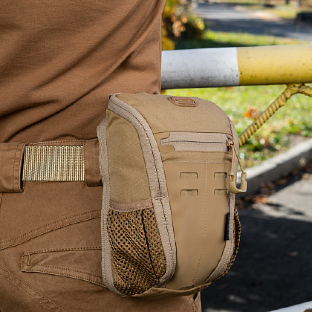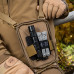 M-Tac сумка Headhunter Elite обладнана відсіком для пістолета, основне відділення представляє собою утилітарний органайзер для EDC. Сумку можна носити як через плече, так і на поясі, закріпивши її на ремені брюк.