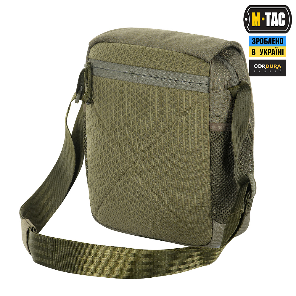 Виготовлена з Cordura Hex і Cordura 1000D – надміцних матеріалів, стійких до стирання і механічних навантажень. Блискавки та пряжки від YKK і Woojin – світових лідерів із виробництва фурнітури. Сумка закривається магнітною застібкою Fidlock, яка розроблена в Німеччині та гарантує швидкий доступ до вмісту. Плечовий ремінь з м'якої нейлонової стропи регулюється по довжині.