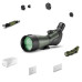 Досить великий 85-мм об'єктив з низькодисперсного ED скла, міцний і легкий корпус магнієвий, ергономіка конструкції продумана до дрібниць і при цьому найконкурентніша ціна на ринку - ось головні, але не єдині переваги підзорної труби Hawke Endurance ED 25-75x85 WP. Конструкція труби повністю герметична та заповнена азотом, не допускає проникнення вологи та збирання конденсату. На всі оптичні поверхні нанесено багатошарове покриття, що просвітлює, що є стандартом для труб в даному класі. Призми ж мають спеціальне високоефективне діелектричне покриття, що притаманне лише оптичним приладам вищого класу. Двошвидкісний фокусер (мікро/макро) гарантує гранично чітке налаштування на ціль. Окуляр має два гумові кільця з профільною накаткою. Одне відповідає за зміну збільшення, тоді як поворот другого кільця дозволяє зняти окуляр. Як і належить професійній оптиці, окуляр у підзорних труб Hawke Endurance ED змінний. За бажанням можна придбати додатковий ширококутний окуляр із постійною кратністю. Завдяки спеціальному адаптеру для поєднання фотокамери Ваша труба перетворюється на потужний високоякісний об'єктив. Окулярний вузол Hawke Endurance ED розташований під кутом 45º по відношенню до поздовжньої осі труби - це дуже зручно для спостережень у положенні лежачи та з настільних штативів. Корпус повертається навколо осі, встановлюється під будь-яким кутом і фіксується в кільці з роз'ємом для кріплення штатива. З цікавих рішень можна відзначити чіткі фіксовані положення труби при повороті навколо осі в точках 0, 45 і 90. Висувна сонцезахисна бленда захищає об'єктив від сонячних відблисків і від опадів. На захисній бленді знаходиться спеціальна цілік для попереднього наведення труби на ціль. Монтажна база труби адаптована під стандартне кріплення фотоштативу, тому пошук необхідної опори для спостереження - не проблема.