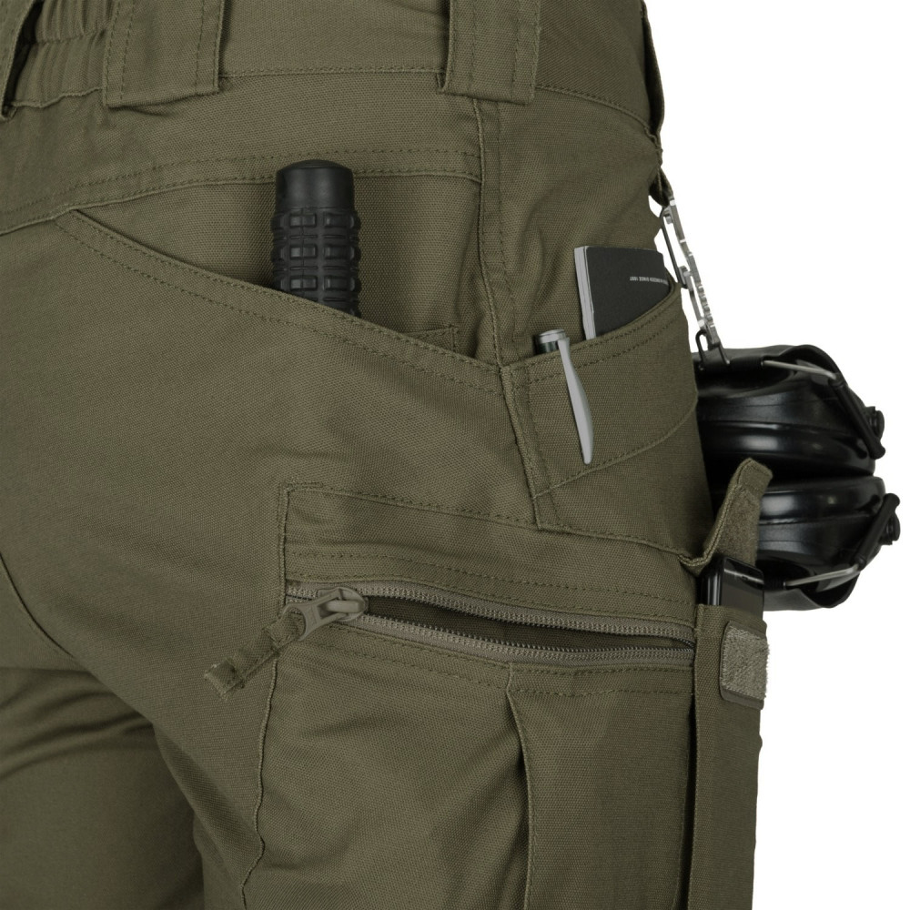 Штаны Urban Tactical Helikon-Tex® UTP® (Urban Tactical Pants®) Olive green - это городская тактическая одежда, созданная для сотрудников оперативных спецслужб и охранных структур. Стильный эргономичный дизайн не делает эту модель специализированной тактической и не привлекает лишнего внимания - это основное правило (Low Profile), которого придерживались конструкторы. Идеальная посадка, большое количество карманов и их практичное расположение позволяют переносить значительное количество снаряжения, равномерно распределяя нагрузку вокруг талии и бедер пользователя. Широкие петли позволяют надевать ремень шириной до 50 мм, включая все тактические ремни Helikon-Tex®: EDC, UTL® или Cobra®. Края передних и задних карманов усилены, чтобы выдерживать постоянную нагрузку клипс фонариков, мультитулов и других аксессуаров.