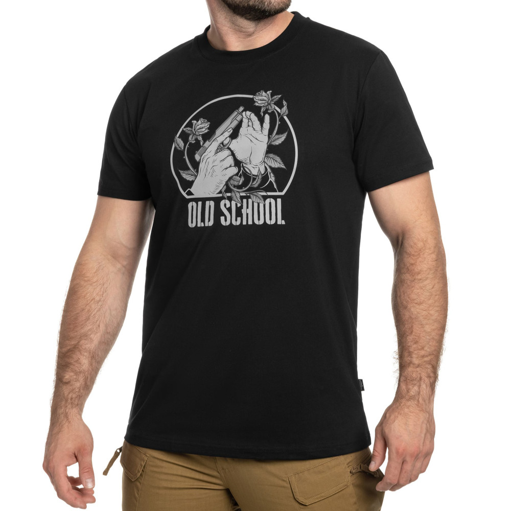 Футболка Helikon-Tex Old school, Black - Эта классическая хлопковая футболка украшена иллюстрацией техники «press check» традиционного способа проверки, есть ли патрон в патроннике, без полного отвода затвора. Для этого один палец помещается на нижней части затвора, а другой на спусковой скобе. Принт также отсылает к культовой сцене из фильма Майкла Манна «Heat» (1995), где герой Винсент Ханна (Аль Пачино) выполняет этот прием. Именно такие детали сделали ленту известной своей реалистичностью и убедительными персонажами.