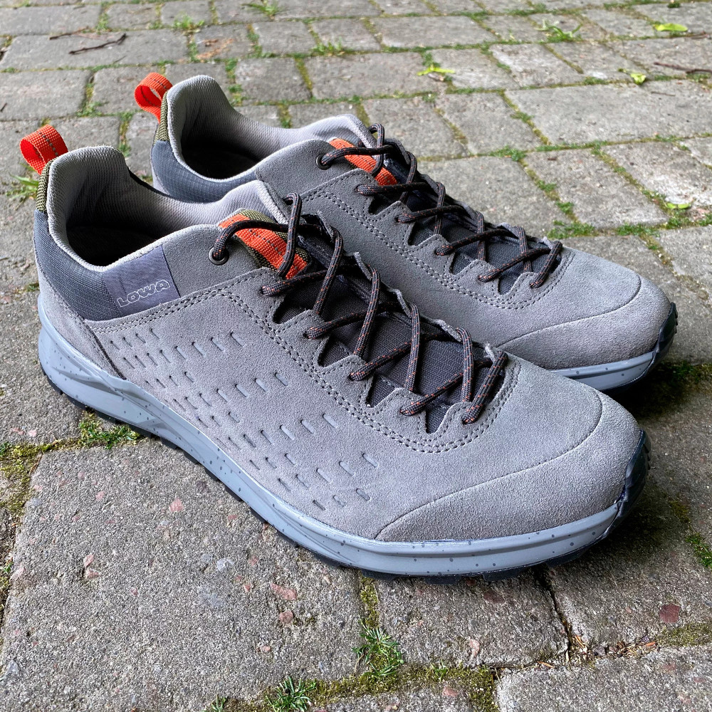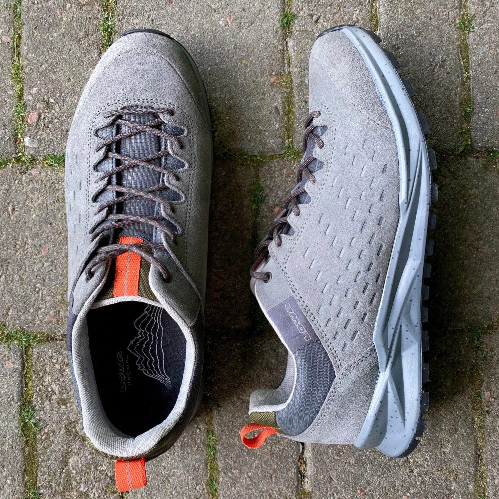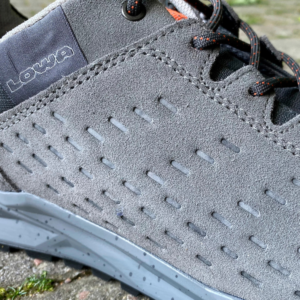 Верхня частина кросівок виконана із комбінації натуральної замші з текстильними вставками. Шкіра це міцний матеріал, який має гарні паропроникні та вологозахисні властивості. У проміжному шарі підошви розміщена LOWA DynaPU®+. Це спеціально розроблений пінний прошарок, який грає ключову роль в амортизаційних властивостях взуття. Завдяки комірчастій структурі ця міжпідошва забезпечує покращений ефект відскоку під час бігу. Також при постійному використанні LOWA DynaPU®+ не втрачає своїх високих експлуатаційних якостей.