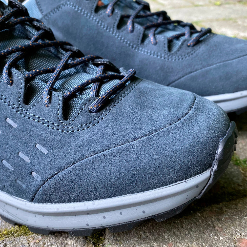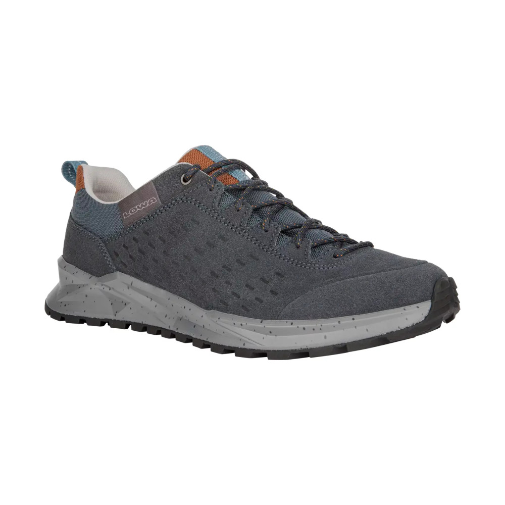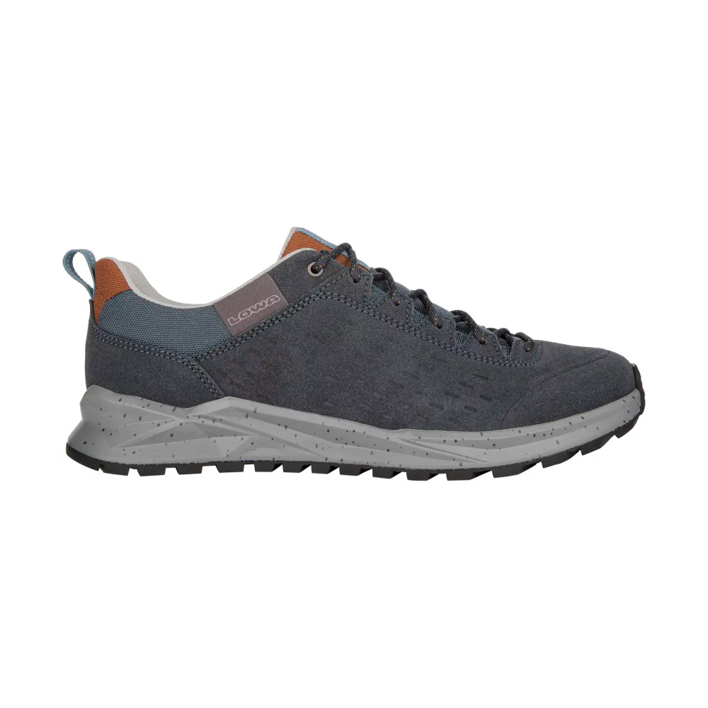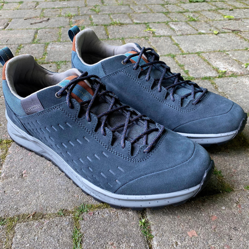 Верхня частина кросівок виконана із комбінації натуральної замші з текстильними вставками. Шкіра це міцний матеріал, який має гарні паропроникні та вологозахисні властивості. У проміжному шарі підошви розміщена LOWA DynaPU®+. Це спеціально розроблений пінний прошарок, який грає ключову роль в амортизаційних властивостях взуття. Завдяки комірчастій структурі ця міжпідошва забезпечує покращений ефект відскоку під час бігу. Також при постійному використанні LOWA DynaPU®+ не втрачає своїх високих експлуатаційних якостей.