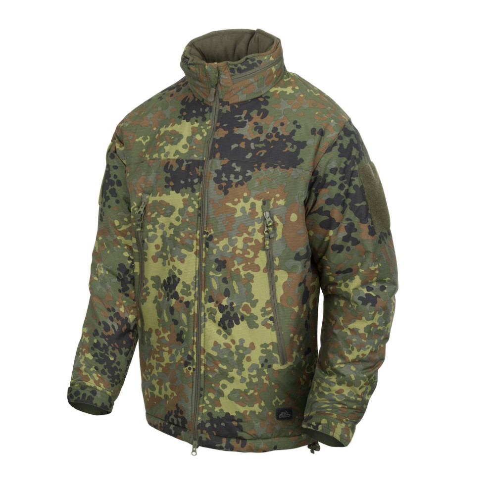 Helikon-Tex® Level 7 Lightweight Winter Jacket Flecktarn - соответствует расширенной системе одежды для холодной погоды (ECWCS). Зимняя куртка уровня 7 - это последний, внешний слой изоляции для использования в экстремально холодную погоду. Изоляция Climashield® Apex™ согревает пользователя при любых условиях. Куртку LVL7 можно носить с любыми слоями низшего уровня (согласно ECWCS): Базовые слои 1 и 2, флис, подстежка и т. п. Гидрофобный утеплитель - быстро сохнет, если намокнет. Внешняя нейлоновая оболочка защищает утеплитель от ветра и воды, позволяя при этом дышать. На воротнике размещен вместительный капюшон, который регулируется шнурками, доступными из нагрудных карманов. Карман на капюшоне застегивается на двустороннюю молнию. Это важно для доступа к капюшону без необходимости снимать перчатки. Мягкая флисовая подкладка капюшона повышает комфорт при носке и защищает от потертостей. Два нагрудных кармана с флисовой подкладкой защищают руки от обморожения. Большие боковые карманы застегиваются на молнию, что обеспечивает доступ к ним даже в тяжелых перчатках. Level 7 доступен в нескольких цветах, чтобы соответствовать условиям работы - как на открытой местности, так и в городских условиях.