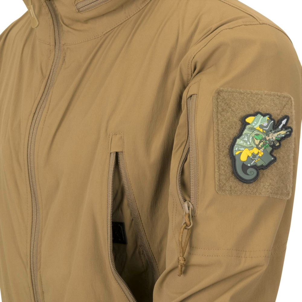 Куртка Helikon-Tex TROOPER - StormStretch, Coyote - это современная софтшеловая ветровка, идеальная как легкий верхний слой, защищающий от дождя и ветра. Она изготовлена из инновационной ткани StormStretch®, которая на 98% состоит из нейлона и на 2% из эластана. Материал обеспечивает высокую стойкость к истиранию и разрывам, а также достаточную эластичность для свободы движений. Куртка оснащена семью функциональными карманами, позволяющими удобно разместить снаряжение и быстро получить к нему доступ. Нагрудные, плечевые и запястные карманы закрываются молниями, надежно защищающими содержимое. Внутри предусмотрен карман на липучке, а на спине расположен "браконьерский карман", доступный с обеих сторон.