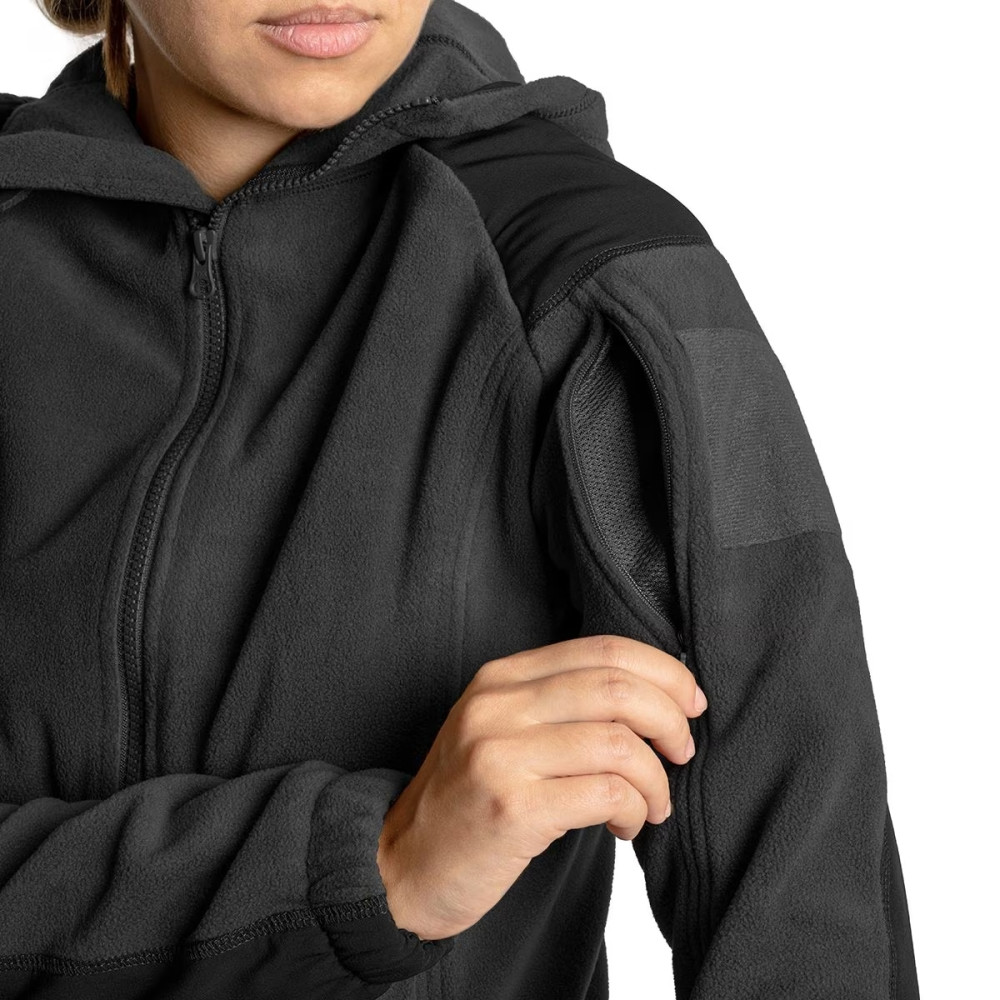 Женская куртка Helikon-Tex CUMULUS® Jacket - Heavy Fleece Black - женская версия легкой флисовой толстовки из линейки Outback. Анатомический крой с вытачками вокруг талии подчеркнет женские формы, обеспечит отличную теплоизоляцию и воздухопроницаемость. Куртка изготовлена из плотного флиса, благодаря уникальным свойствам которого отлично удерживает тепло. Вентиляционные сетчатые вставки под подмышками выводят лишнее тепло и влагу, обеспечивая комфортную температуру тела. Плечи и локти усилены дополнительным слоем прочного нейлонового материала. Куртка оснащена шестью карманами разного размера. CUMULUS - это универсальная, практичная, легкая, флисовая куртка с капюшоном, которая пригодится во время путешествия, прогулки в прохладную погоду, утренней пробежки. Хотя толстовка сохранила все признаки классической Cumulus, но была переработана даже в самых мелких деталях, чтобы достойно выглядеть на женском теле.