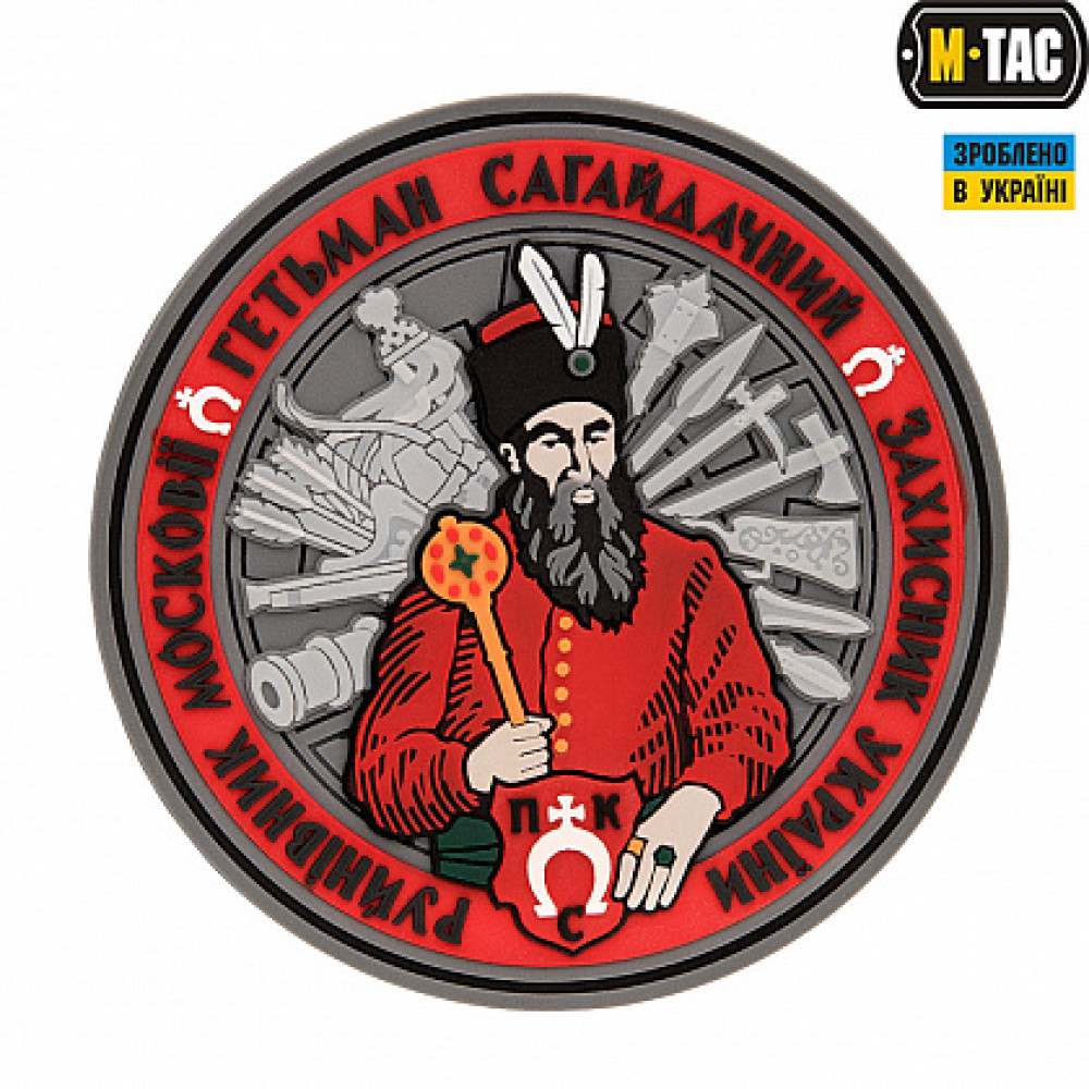 Нарукавная нашивка Гетьман Сагайдачний- так называемый "Morale patch". Петро Конашевич-Сагайдачний организатор успешных походов реестровых казаков против Крымского ханства, Османской империи и московского царства, меценат православных школ.. Патч крепится на нарукавную площадку из липучки "велкро", (на самом патче с обратной стороны пришита ответная часть липучки), либо на снаряжение - рюкзаки, каски и прочее. Уставной, как и все "моральные" патчи, данная нашивка не является, но может носиться как в зоне БД, так и за ее пределами.