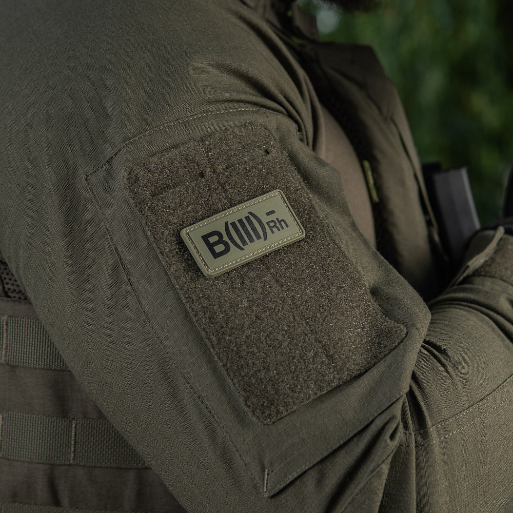 Описание M-Tac нашивка группа крови B(III) Rh(-) PVC 25х60 Olive