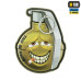 Патч выполнен в виде американской осколочной гранаты М67, которая находится на вооружении ведущих армий мира и уничтожает все в радиусе 15 метров. На гранате изображено юмористически-саркастическое Emoji, которое служит элементом невербального общения и намекает на неизбежную прожарку оккупантов.