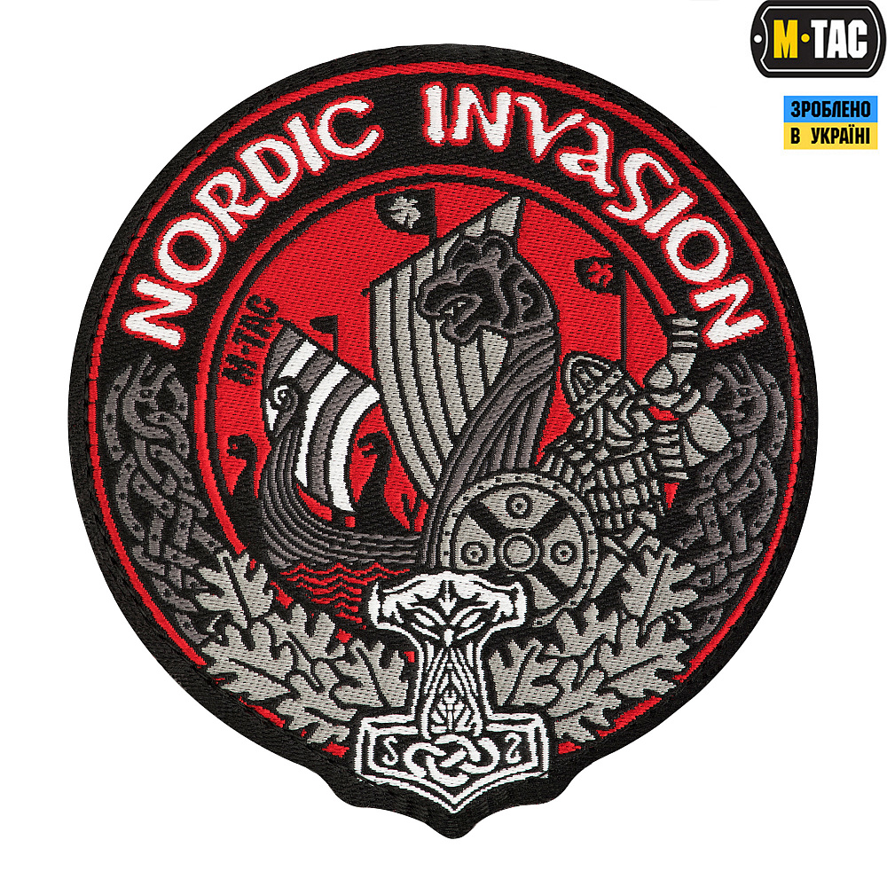 Нарукавная нашивка Nordic Invasion - так называемый "Morale patches" - крепится на нарукавную площадку из велкры -липучки, (на самом патче с обратной стороны пришита ответная липучка), либо на снаряжение - рюкзаки, каски и проч. Уставными не являются, но может носится как в зоне БД, так и за ее пределами.