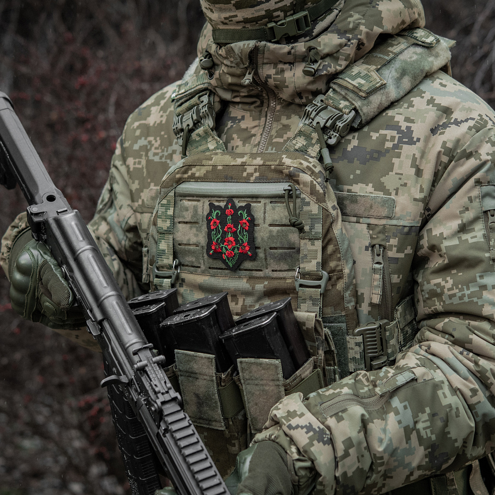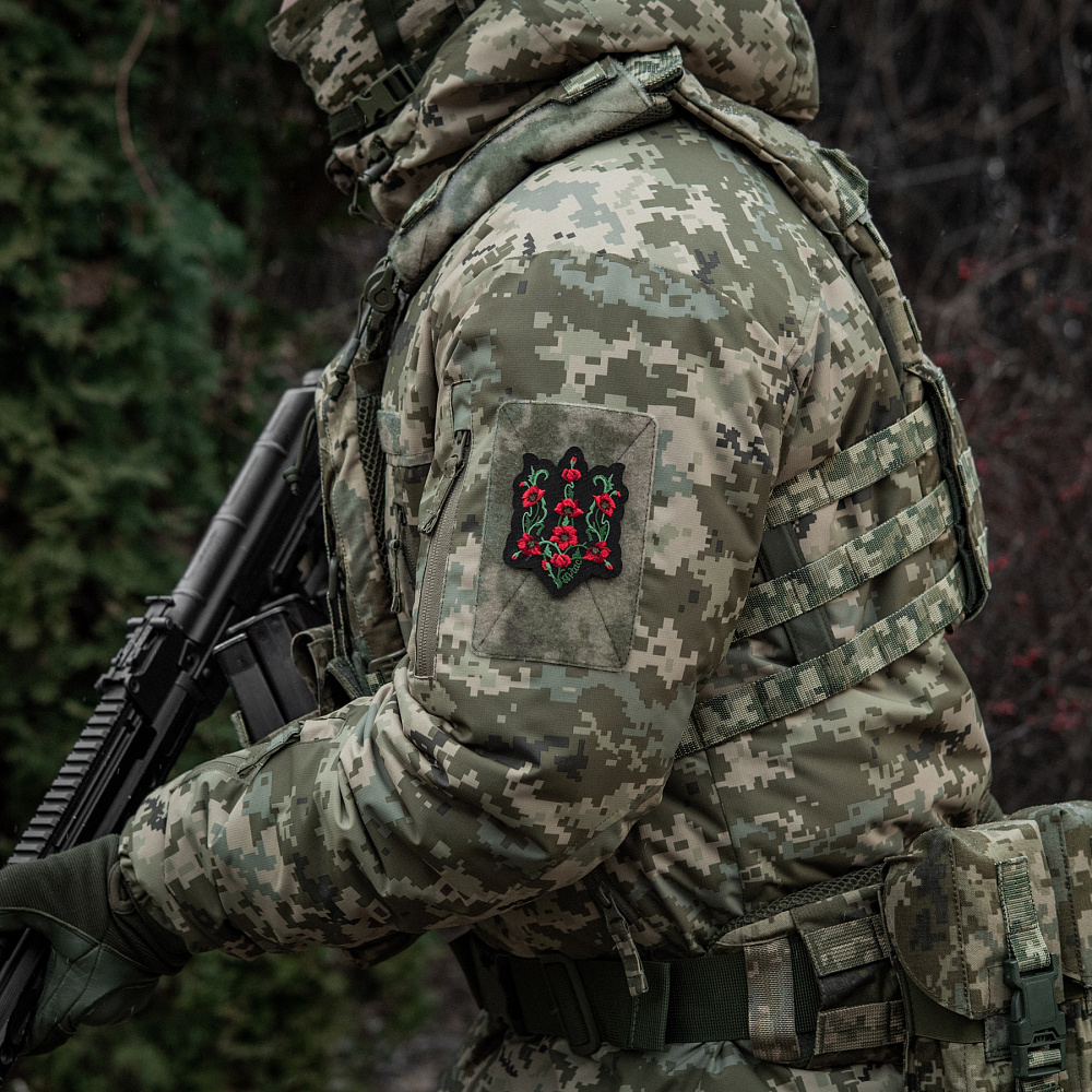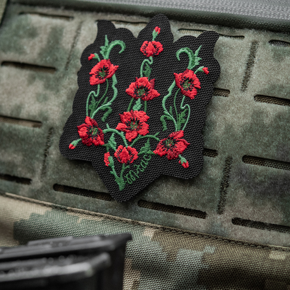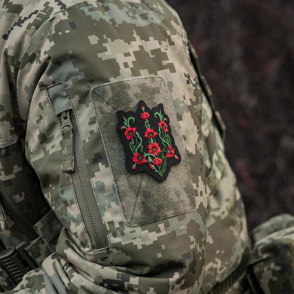 Бренд М-Тас создал моральный патч в форме герба Украины с вышитыми маками, чтобы вы могли дополнить свой тактический образ отголосками украинских традиций.