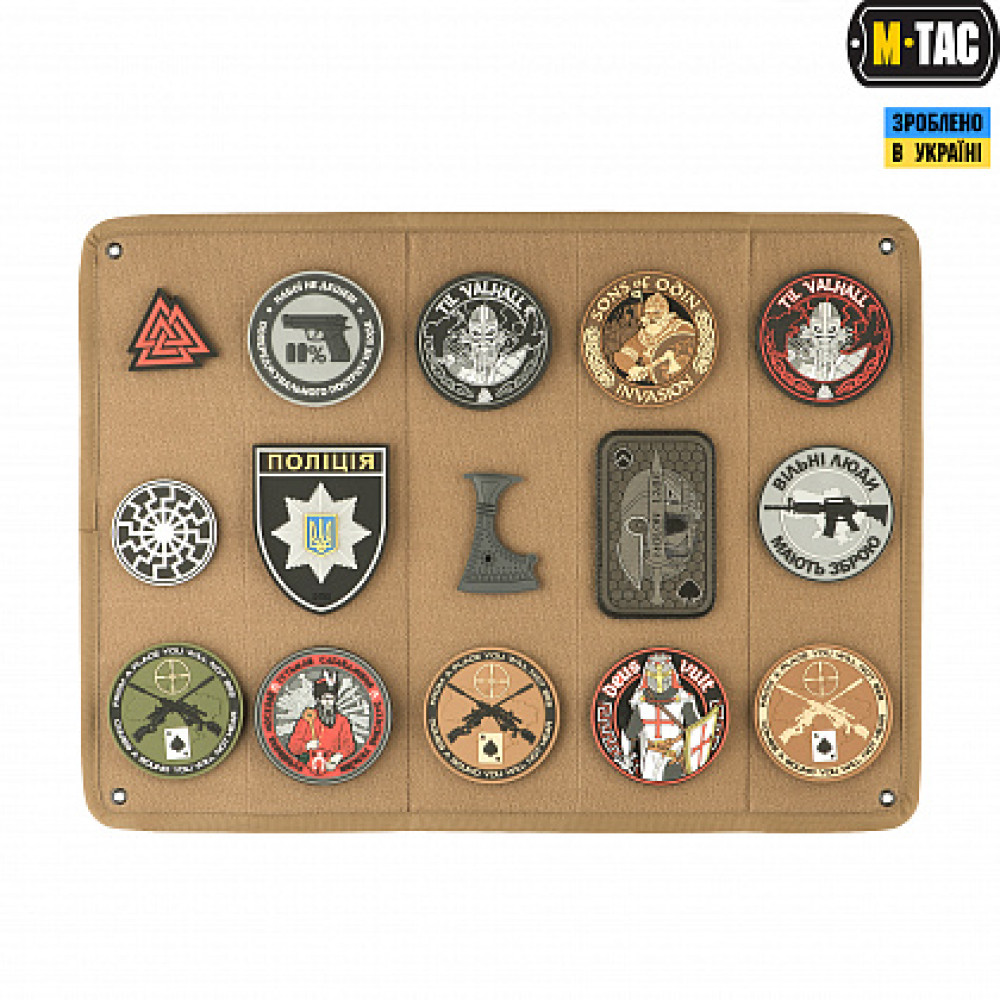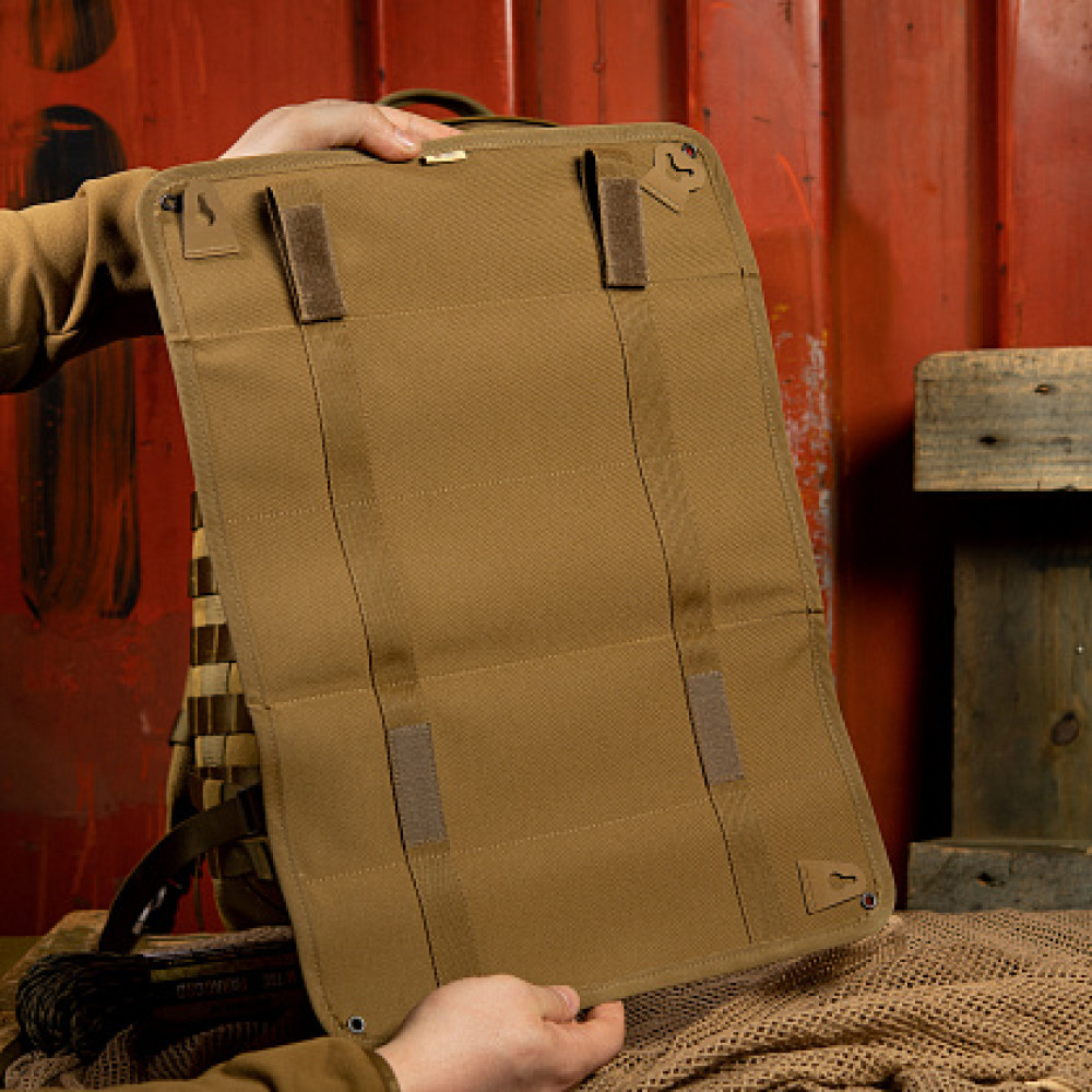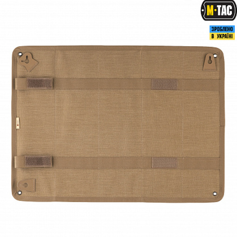 Удобный органайзер M-Tac для хранения и транспортировки Ваших патчей и нашивок. Панель сворачивается в три сложения, и в таком виде помещается в большинство тактических и городских рюкзаков. В развернутом виде панель можно подвесить как горизонтально, так и вертикально при помощи петель из прочного прорезиненного материала. А с помощью строп на кнопках панель в вертикальном виде можно закрепить на любой горизонтальной перекладине небольшого диаметра.