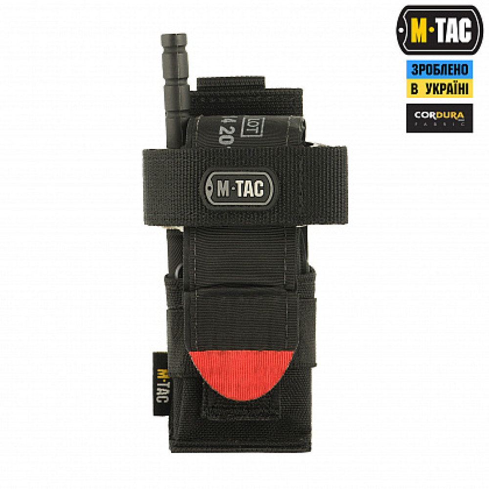 M-Tac подсумок медицинский Tourniquet Pouch предназначен для кровоостанавливающего жгута (C-A-T) или схожего оборудования. Подсумок изготовлен согласно рекомендаций специалистов по тактической медицине. Благодаря добавленной велкро панели вы сможете моментально извлечь жгут, который свернут в специальное положение и очень быстро использовать его. Не тратя драгоценные секунды, в критических ситуаций. Для совместимости с подсумком жгут(Combat Application Tourniquet) должен быть свернут в конфигурацию "Улитка".  Модульная система крепления позволяет устанавливать подсумок на MOLLE - платформы и жилеты, поясные ремни.