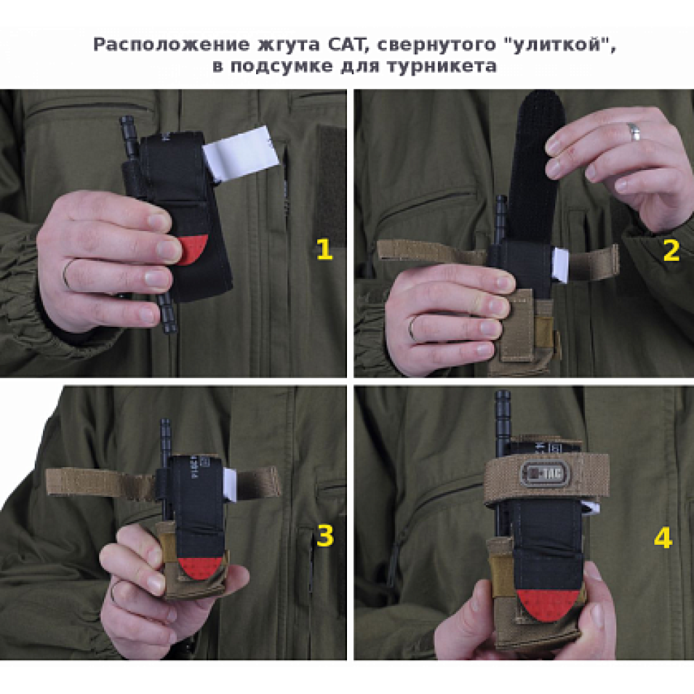 M-Tac подсумок медицинский Tourniquet Pouch предназначен для кровоостанавливающего жгута (C-A-T) или схожего оборудования. Подсумок изготовлен согласно рекомендаций специалистов по тактической медицине. Благодаря добавленной велкро панели вы сможете моментально извлечь жгут, который свернут в специальное положение и очень быстро использовать его. Не тратя драгоценные секунды, в критических ситуаций. Для совместимости с подсумком жгут(Combat Application Tourniquet) должен быть свернут в конфигурацию "Улитка". Модульная система крепления позволяет устанавливать подсумок на MOLLE - платформы и жилеты, поясные ремни.