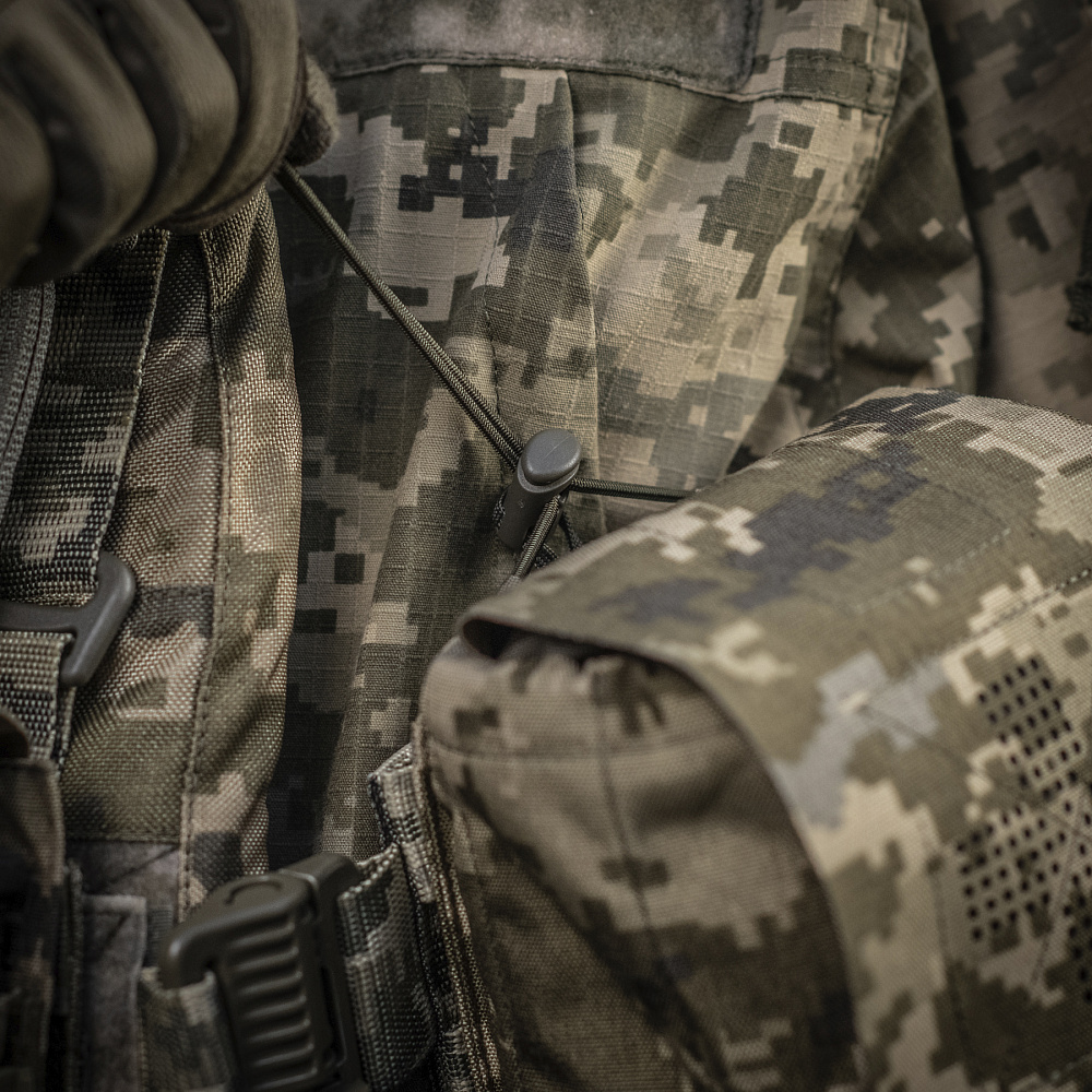 Внешний подсумок изготовлен из Cordura 500D – прочного материала, стойкого к истиранию и высоким нагрузкам. Внутренние боковые стенки оборудованы нейлоновой стропой, благодаря которой подсумок хорошо держит форму. Дополнительным фиксирующим элементом является стяжка, что позволяет надежно удерживать аптечку даже при активных движениях. Крепится к снаряжению с помощью MOLLE интерфейса, выполненного по технологии Laser Cut.