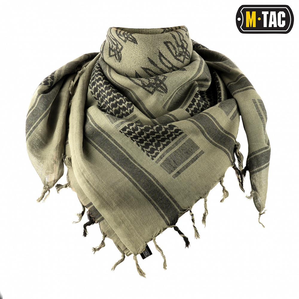 Тактический пустынный M-Tac шарф шемаг с изображением тризуба который является государственным Гербом Украины.Шарф типа "шемаг" (более известен на территории стран СНГ как "арафатка") предназначен для защиты области головы и шеи от воздействия песка и солнца, а также для защиты от ветра при холодных погодных условиях. Данный шарф используется многими армиями мира.