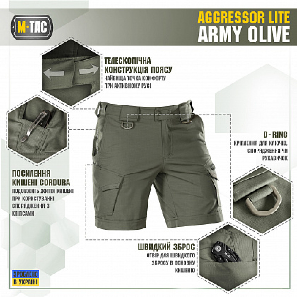 Основные характеристики M-Tac шорты Aggressor Short Army Olive