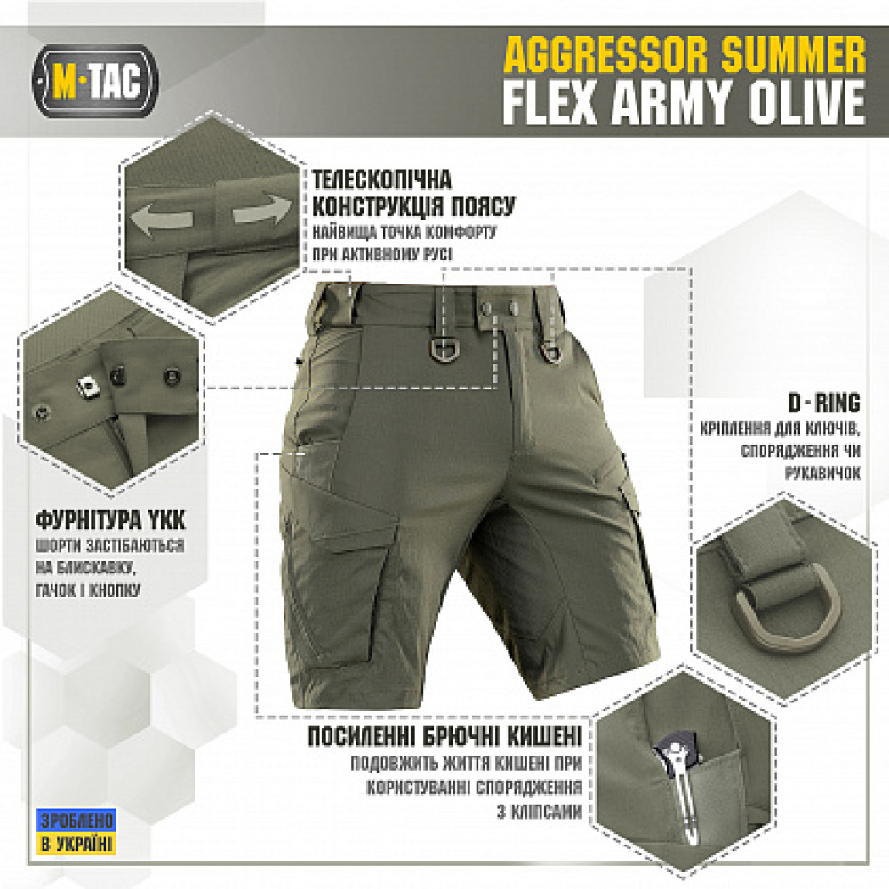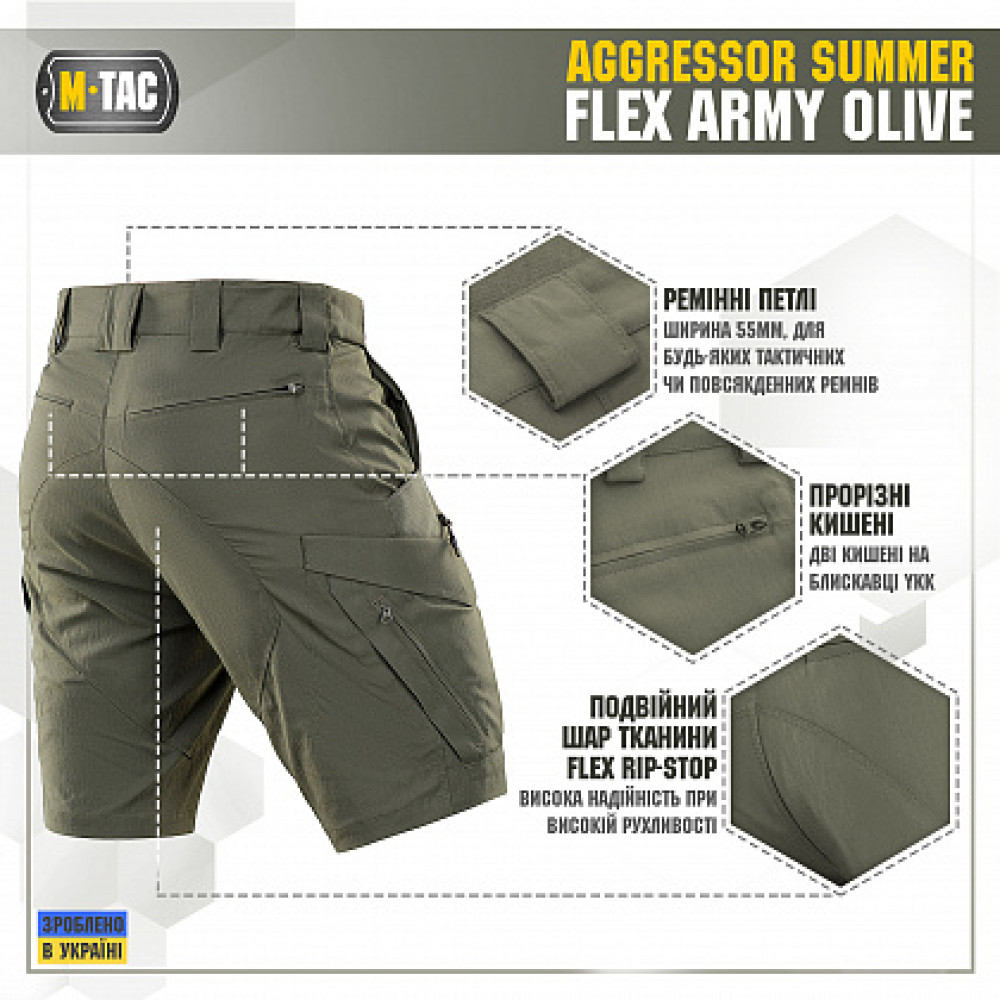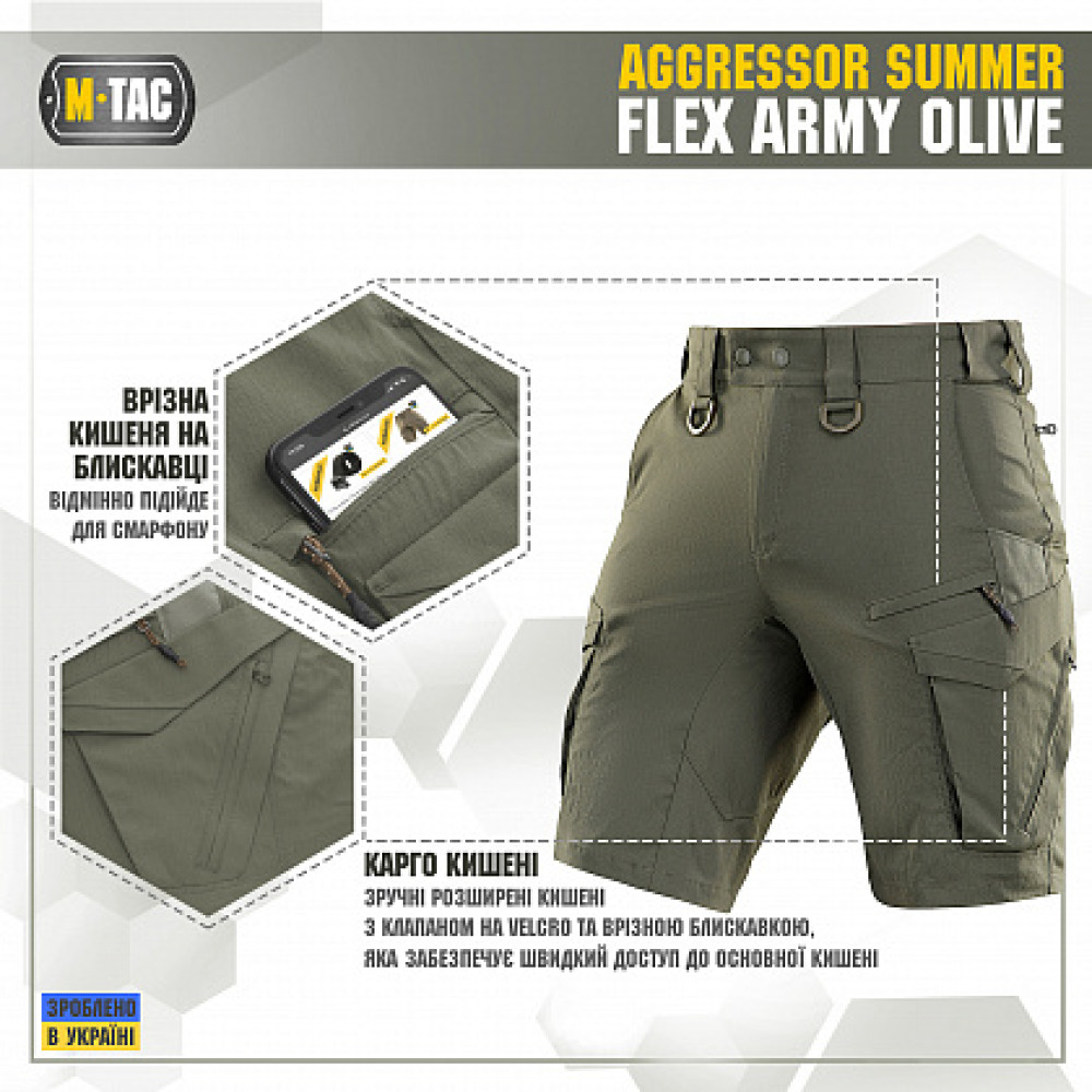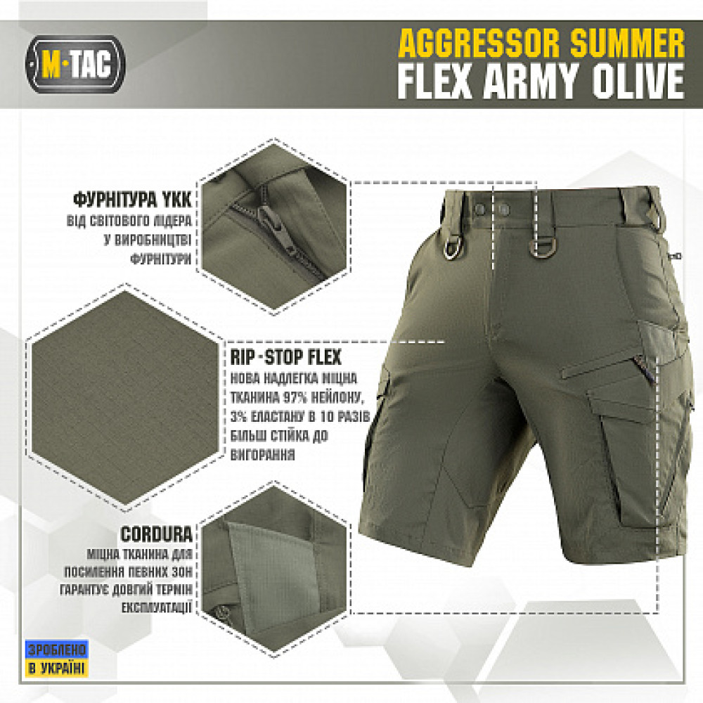 Основные характеристики M-Tac шорты Aggressor Summer Flex Army Olive